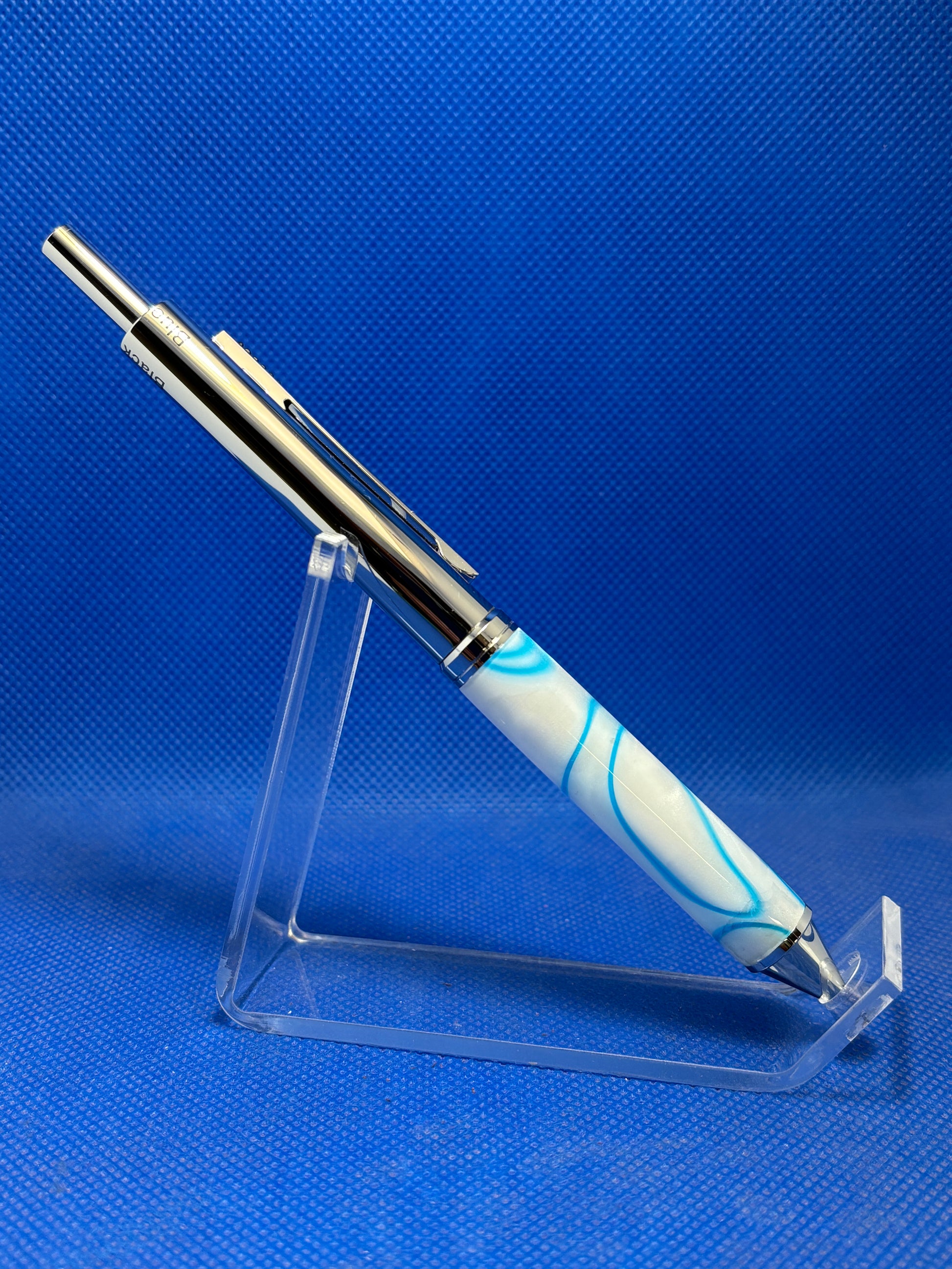 This is one of the most practical pens out there. This 4-in-1 pen features chrome trim with a "Cloud Burst" acrylic acetate body. What sets this pen apart from other pens is its versatility as it incorporates blue, black, and red pens and a 7mm pencil in one. By simply rotating the body you can select which pen or pencil you would like to use. Brilliant!