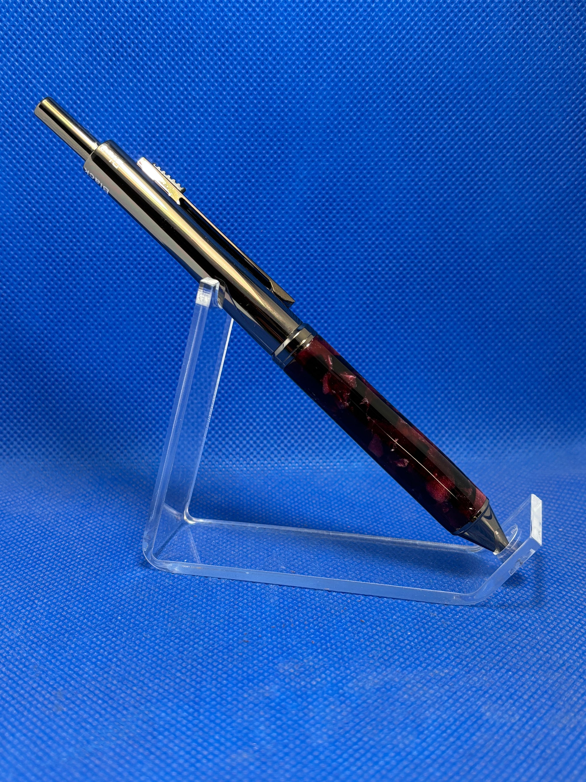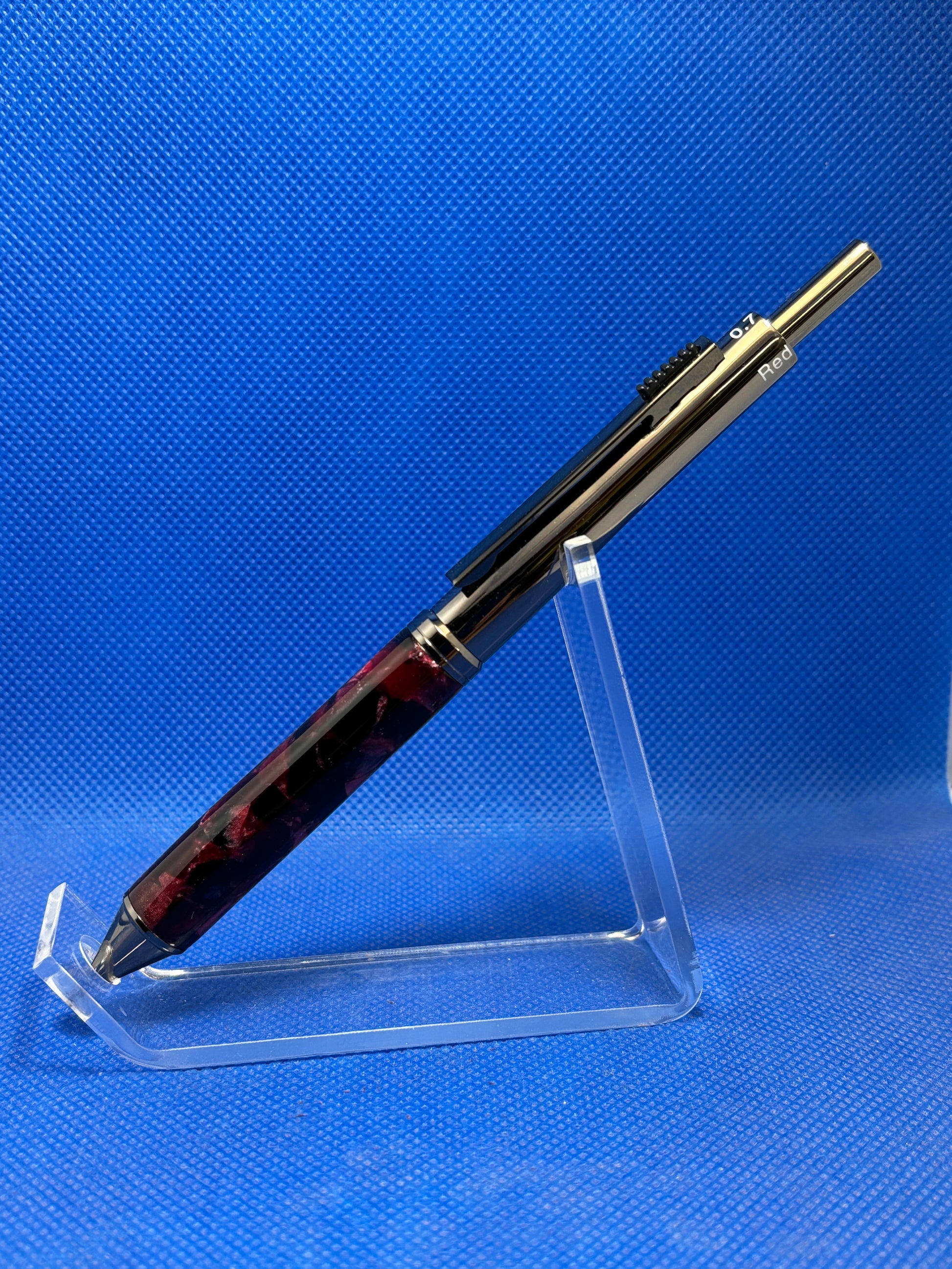 This is one of the most practical pens out there. This 4-in-1 pen features gun metal trim with a "Red Granite" acrylic acetate body. What sets this pen apart from other pens is its versatility as it incorporates blue, black, and red pens and a 7mm pencil in one. By simply rotating the body you can select which pen or pencil you would like to use. Brilliant!