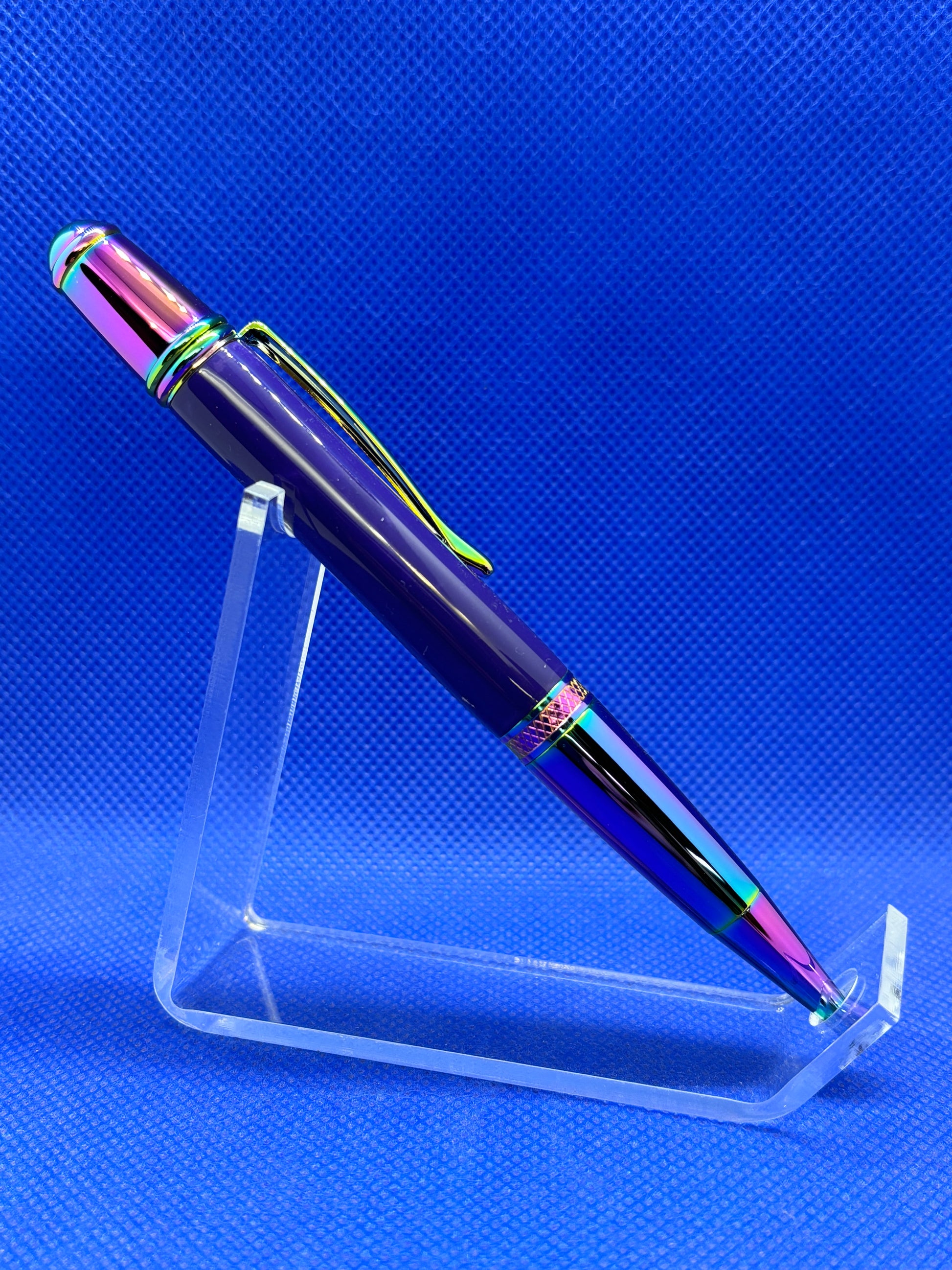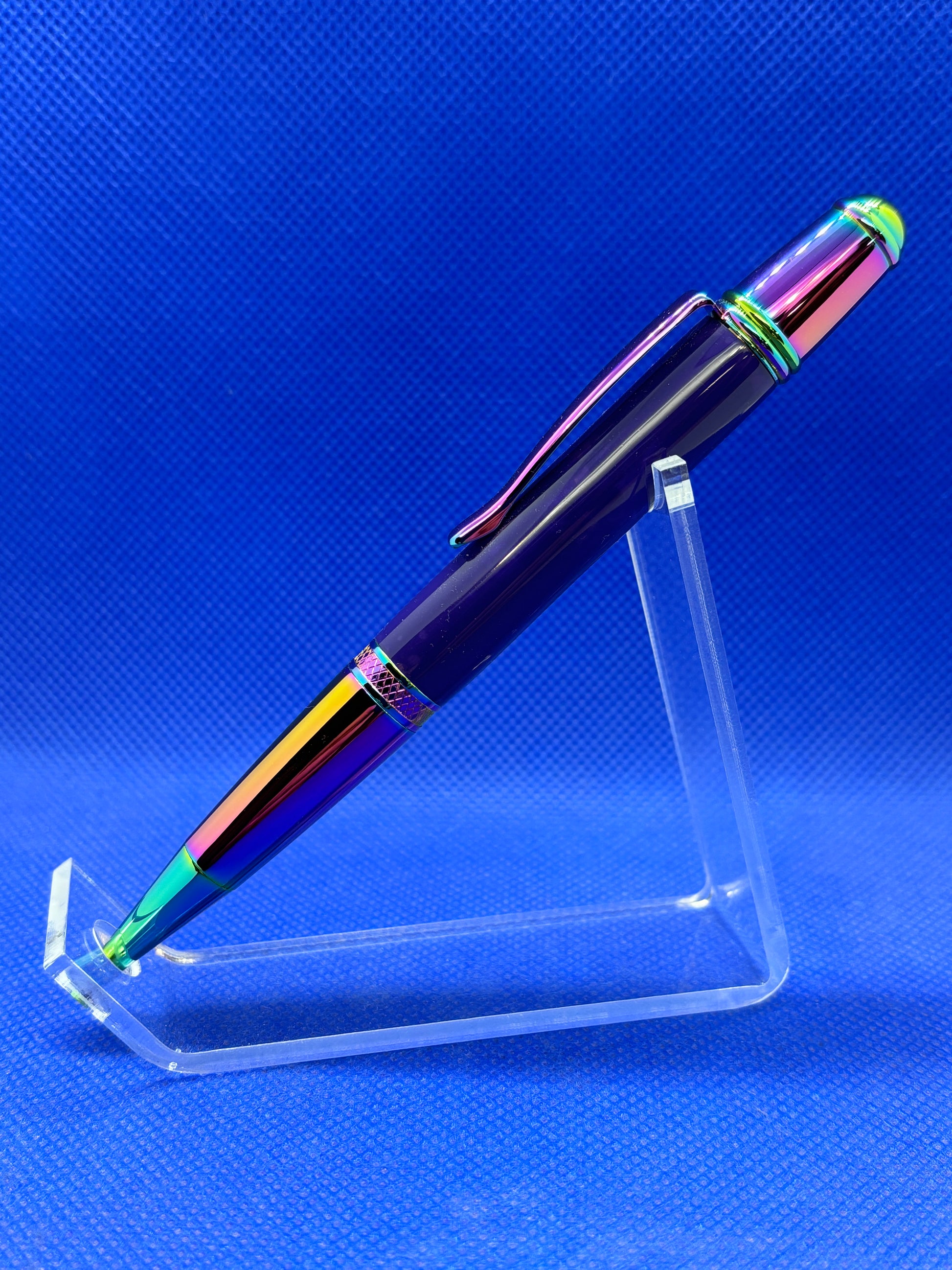 This beautiful Aurora pen features a solid purple acrylic acetate body and multi-coloured "Chameleon" metalwork. This pen uses standard Parker style refills.