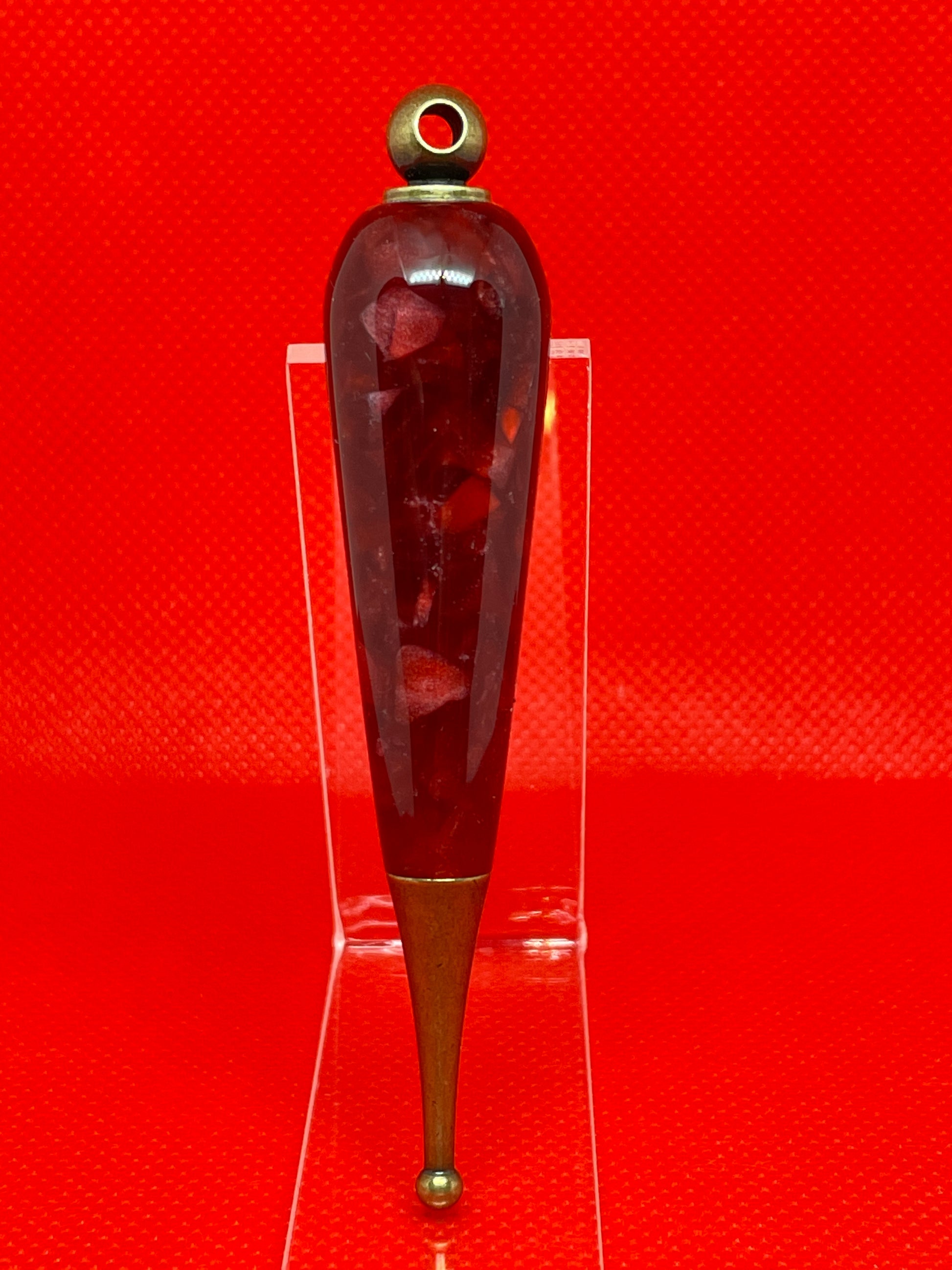 This Christmas ornament features Antique Brass metalwork and a "Radiant Red" Acrylic Acetate body. The different glowing reds in this blank give it depth, especially as it reflects the Christmas lights on your tree.