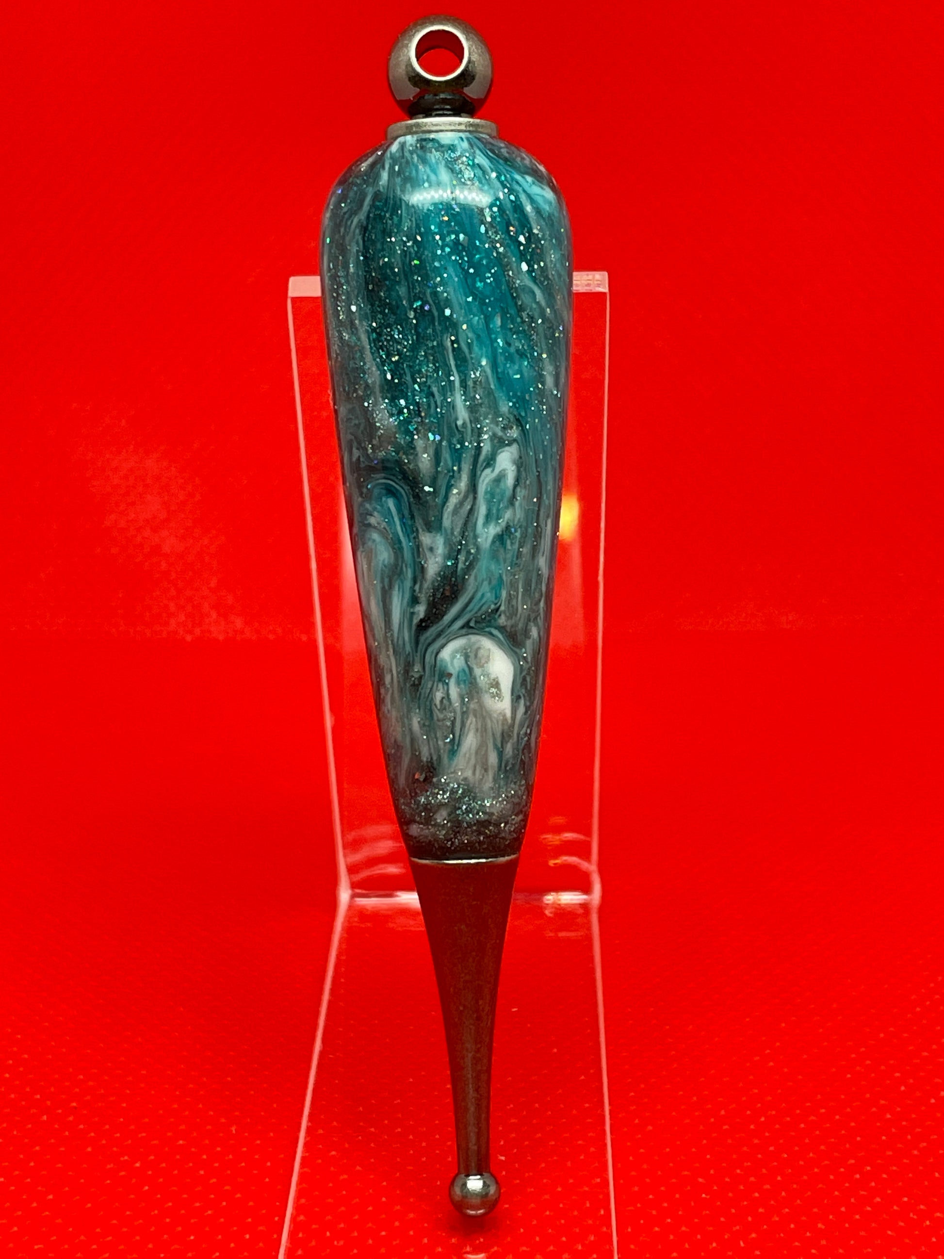 This Christmas ornament features Antique Pewter metalwork and a DiamondCast Silver Lake body. The DiamondCast body is made with real diamond flakes. This gives unparalleled sparkle and brilliance, and it will an ornament that is treasured for years.