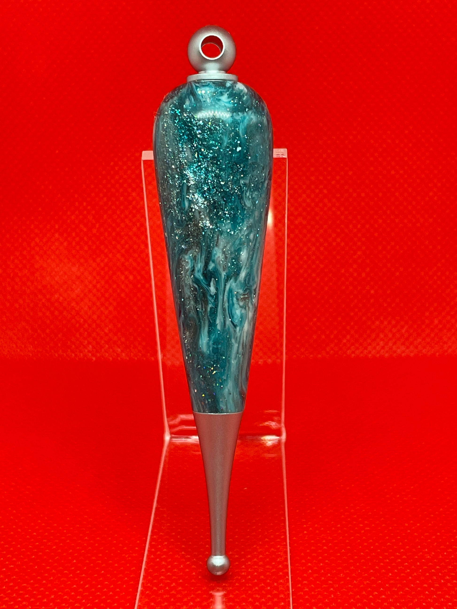 This Christmas ornament features Satin Chrome metalwork and a DiamondCast Silver Lake body. The DiamondCast body is made with real diamond flakes. This gives unparalleled sparkle and brilliance, and it will an ornament that is treasured for years.