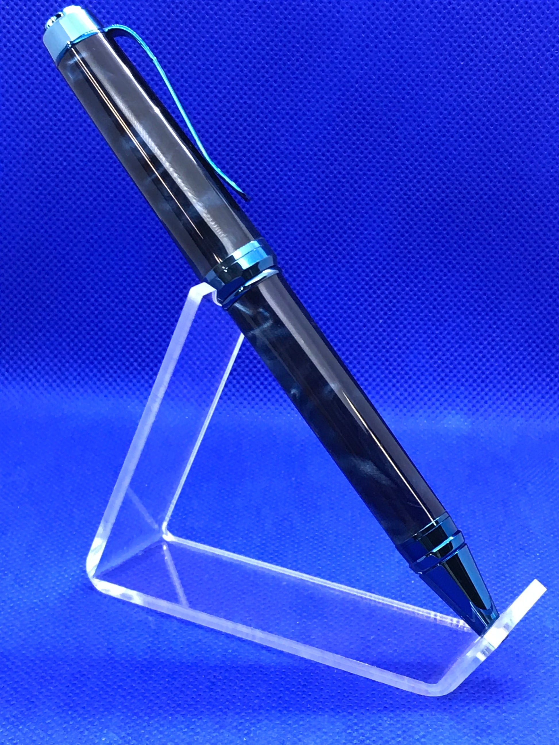 This Cigar ballpoint pen features titanium blue fittings and a rich "Blue Abyss" acrylic acetate body. If you like blue, this pen definitely hits the mark. Very well balanced in the hand and comfortable for long periods of writing. This pen comes in a window box and uses standard Parker style refills.
