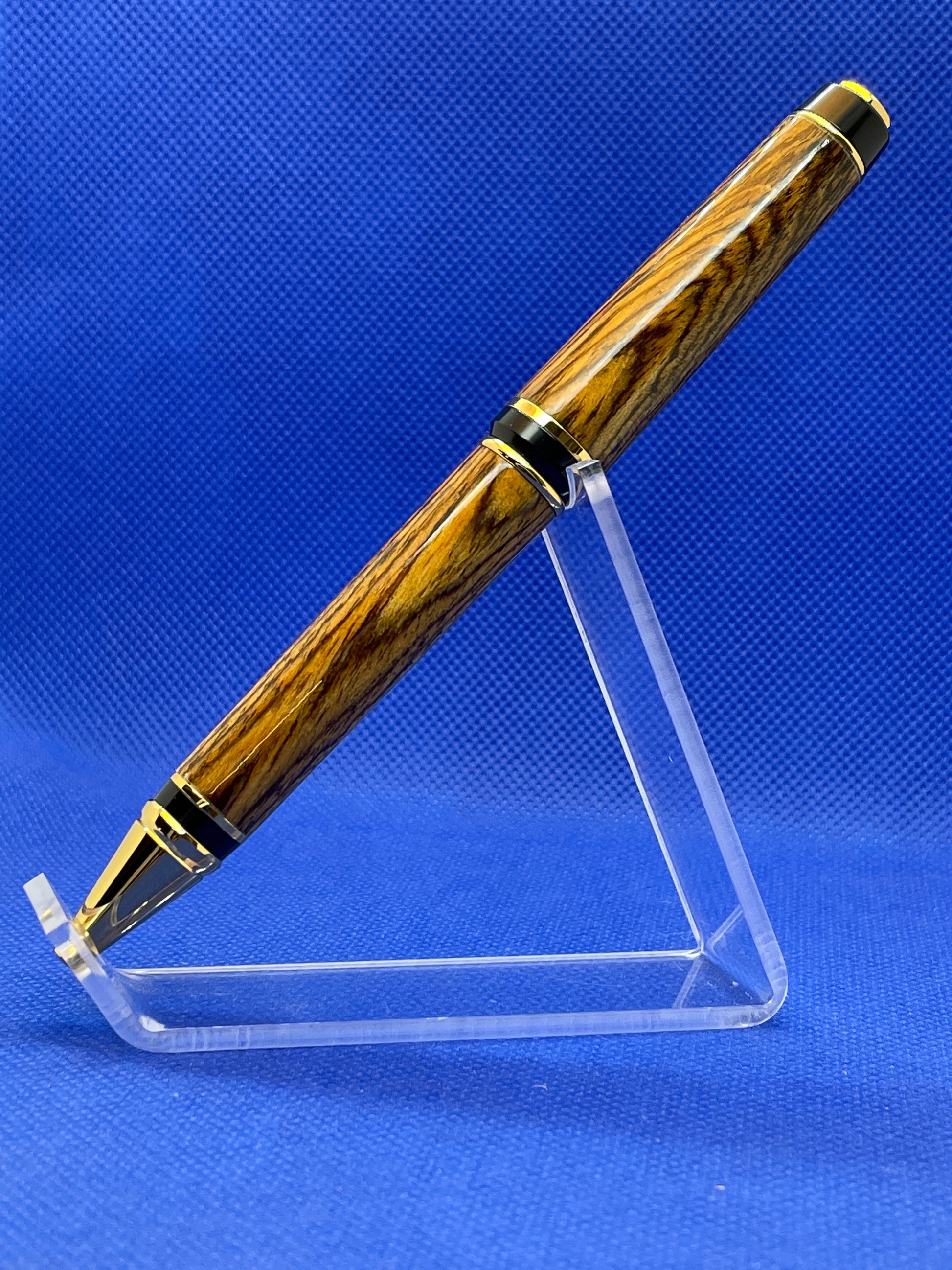 This Cigar ballpoint pen features gold fittings and a stunning Bocote wood body. The dramatic wood grain in the Bocote make this pen really stand out. This pen uses standard Parker style refills.