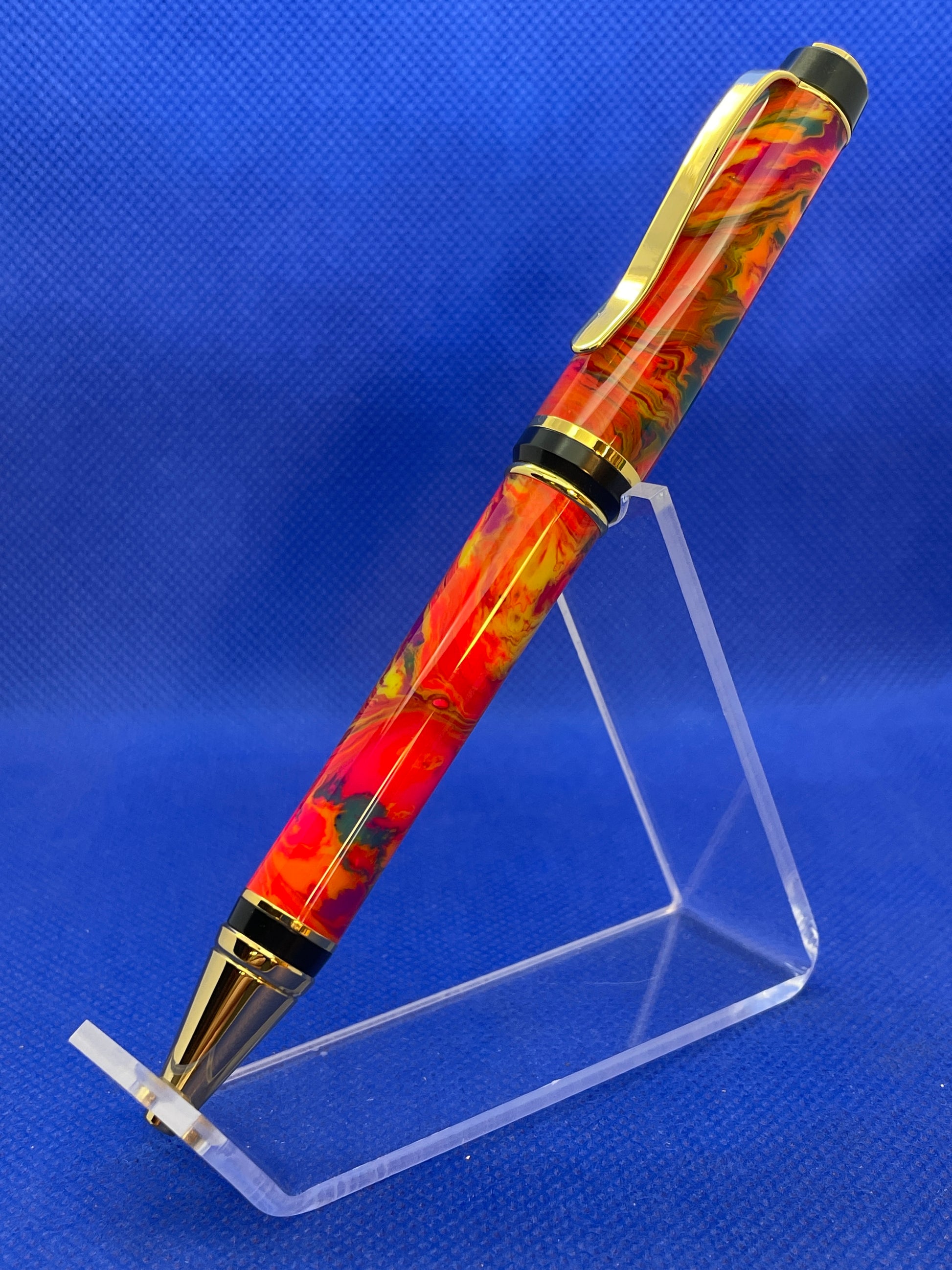 This Cigar ballpoint pen features two-tone chrome fittings and a wild multi-colour swirl body. Very well balanced in the hand and comfortable for long periods of writing. This pen uses standard Parker style refills.