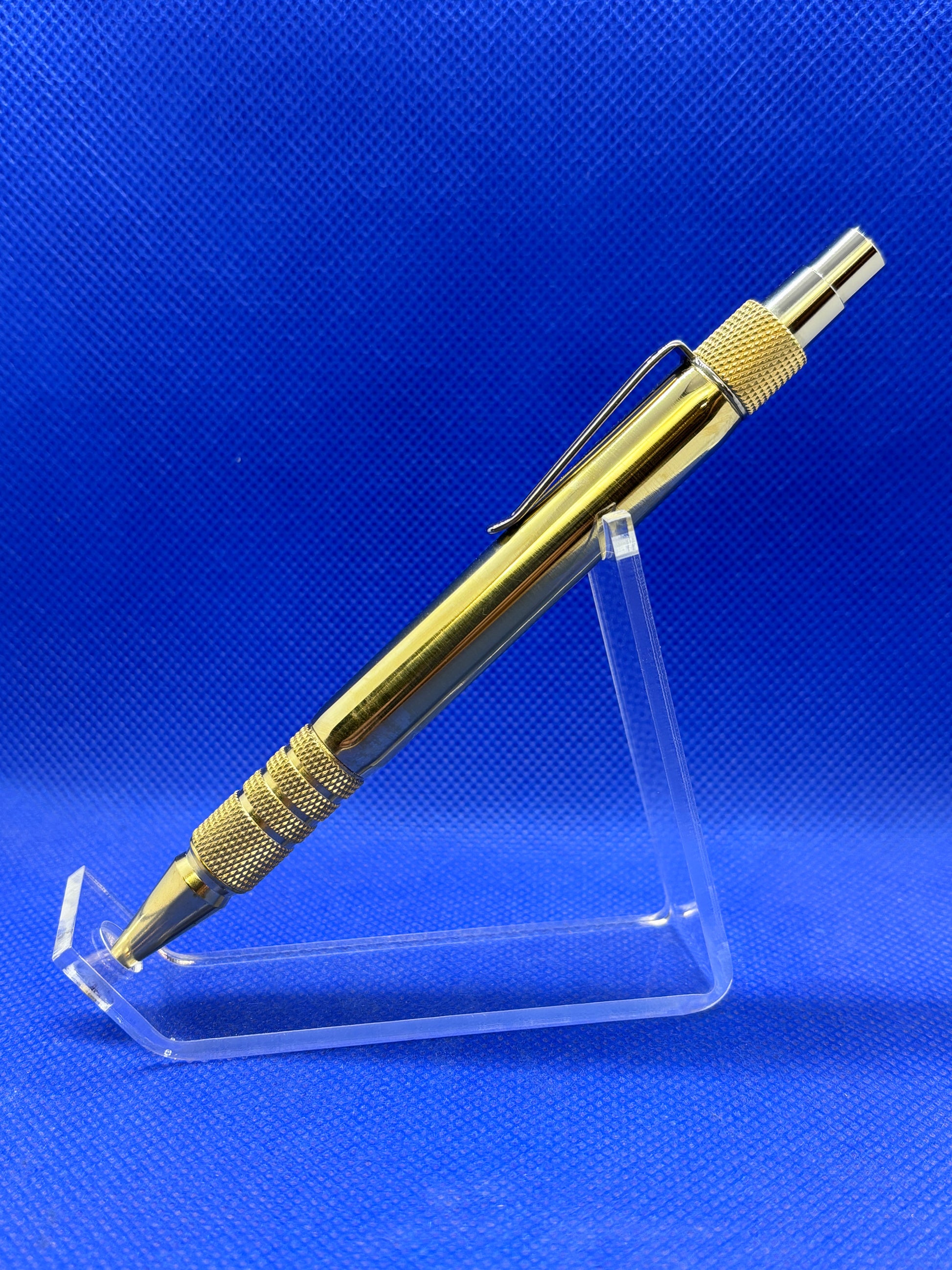 This Dura Click push button ballpoint pen features a hand turned, all brass body and an ultra-reliable, all metal Schmidt SKM-88 mechanism that is precision-engineered in Germany. This Dura Click is weighty yet balanced and the knurling on the nib section give a secure and comfortable grip. This pen uses standard Parker refills.