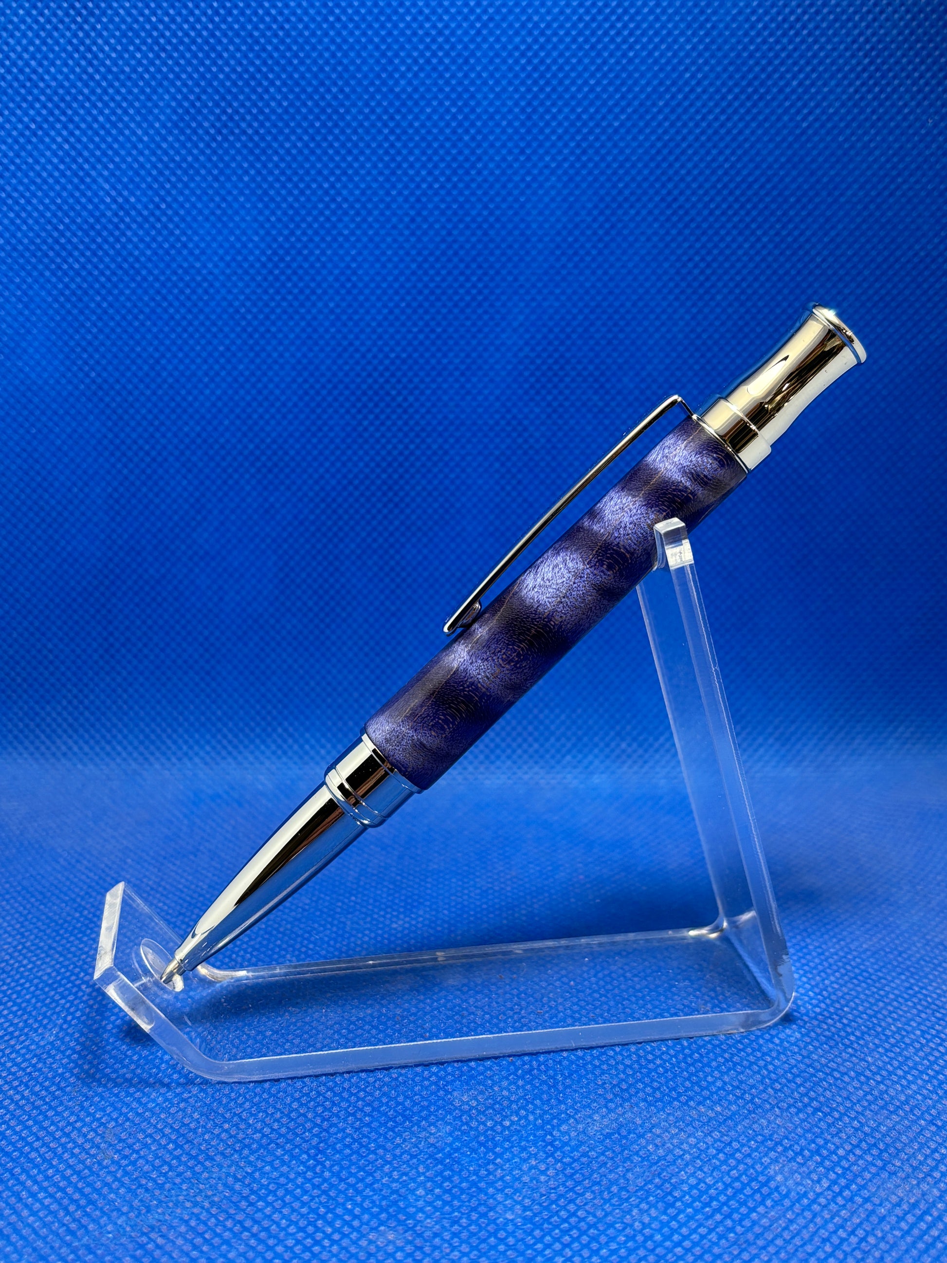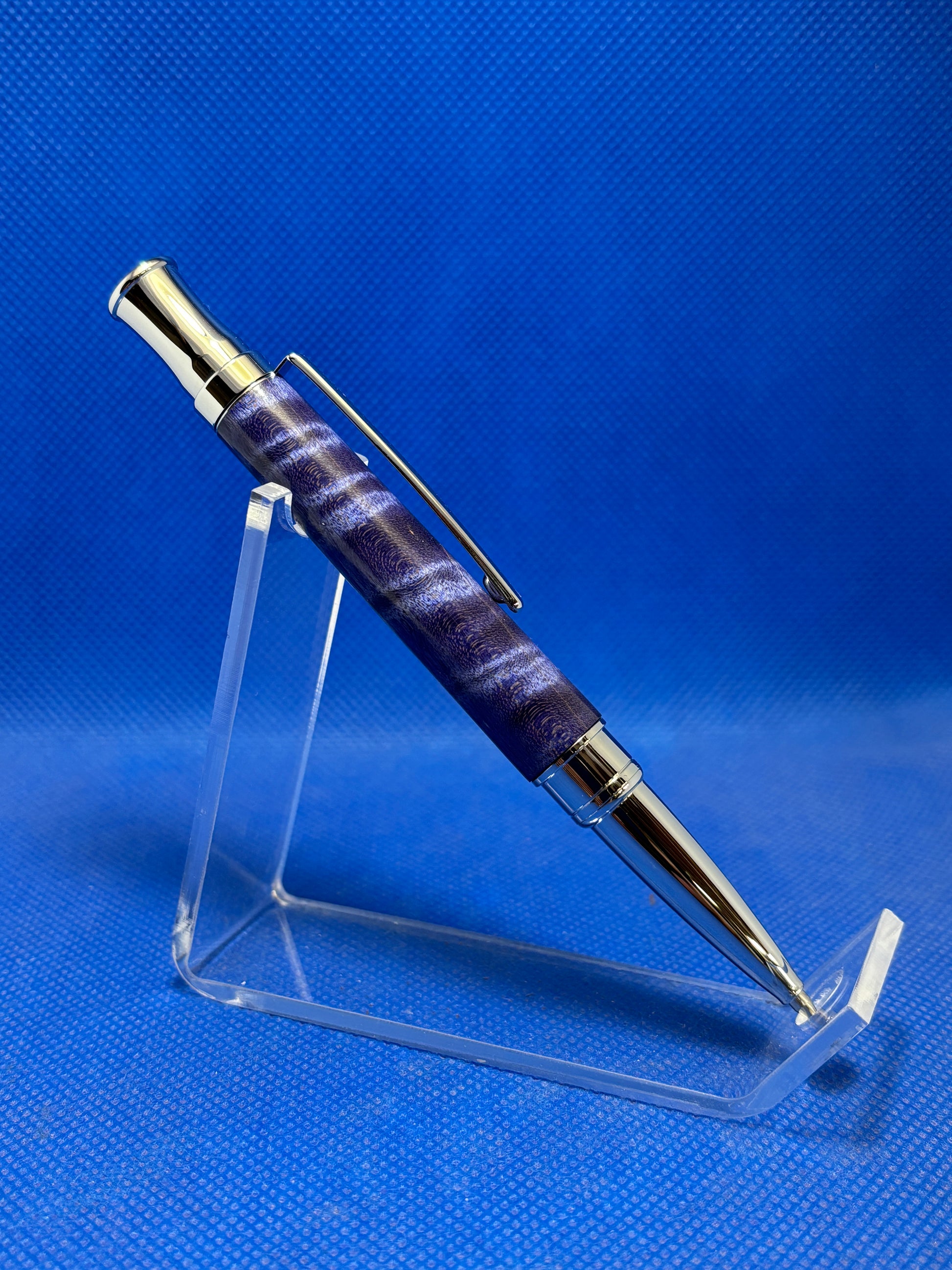 This convertible Etesia pen and pencil features chrome metalwork and a "Purple Haze" curly maple body. This pen comes with both a pencil mechanism and a ballpoint pen refill and it only takes a few seconds to switch from the pencil unit to the ballpoint refill so you can have one pen that easily accomplishes two tasks! The pen uses "Parker" style refills and the pencil uses 0.7mm leads.