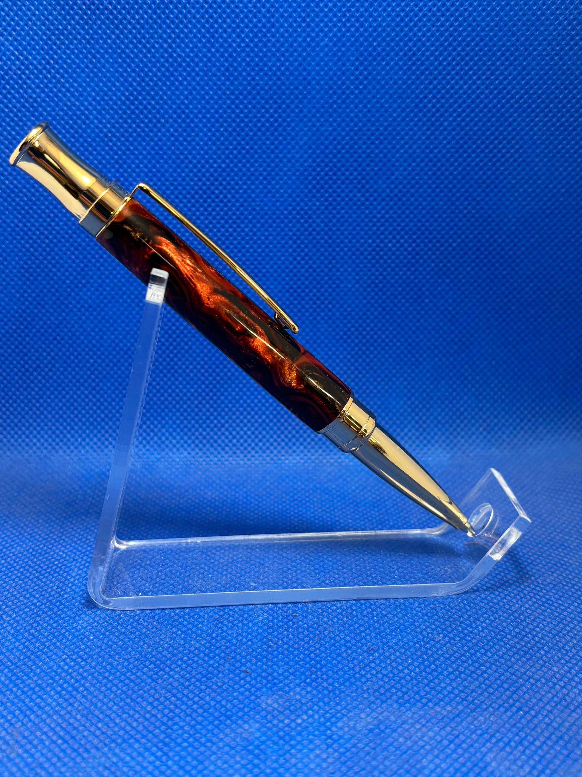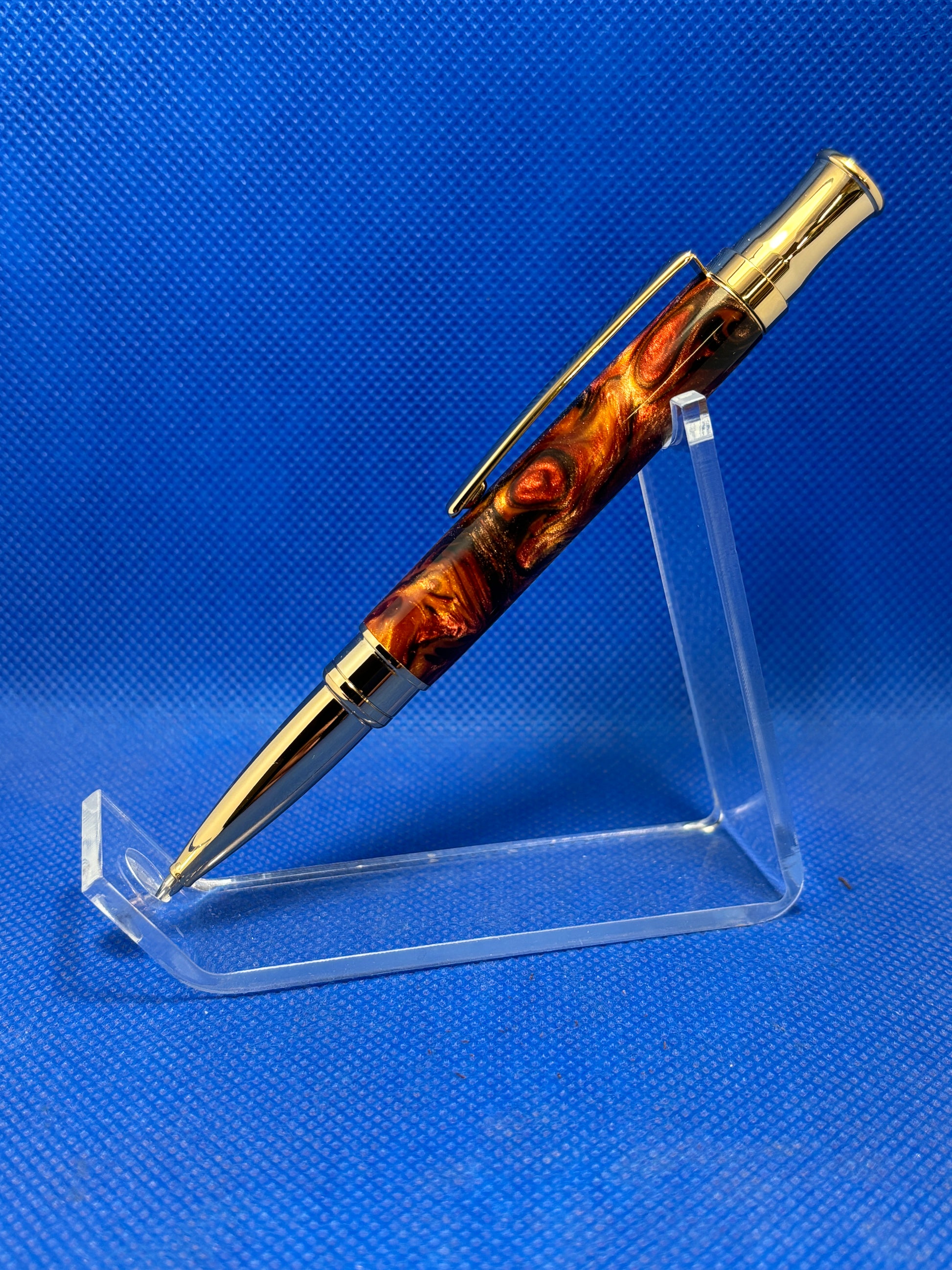 This convertible Etesia pen and pencil features gold metalwork and a "Autumn Bronze" resin body. This pen comes with both a pencil mechanism and a ballpoint pen refill and it only takes a few seconds to switch from the pencil unit to the ballpoint refill so you can have one pen that easily accomplishes two tasks! The pen uses "Parker" style refills and the pencil uses 0.7mm leads.
