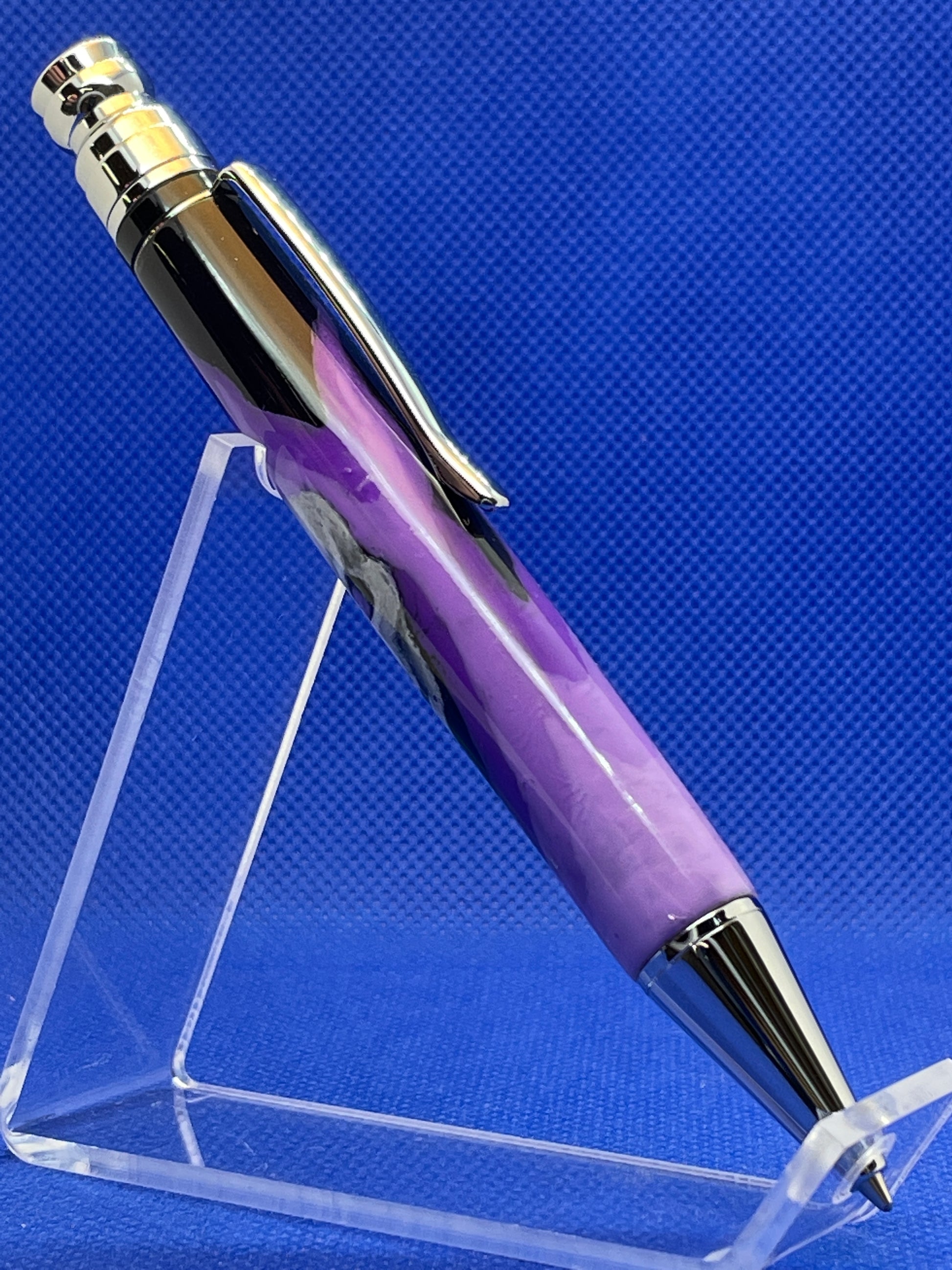 Rachel knocked it out of the park with the fabulous fully hand painted Skull pen. There are an incredible amount of tiny details and it's hard to believe they were all done by hand! It features bright chrome trim and a black cabochon on the top. This one will stand out and get noticed.