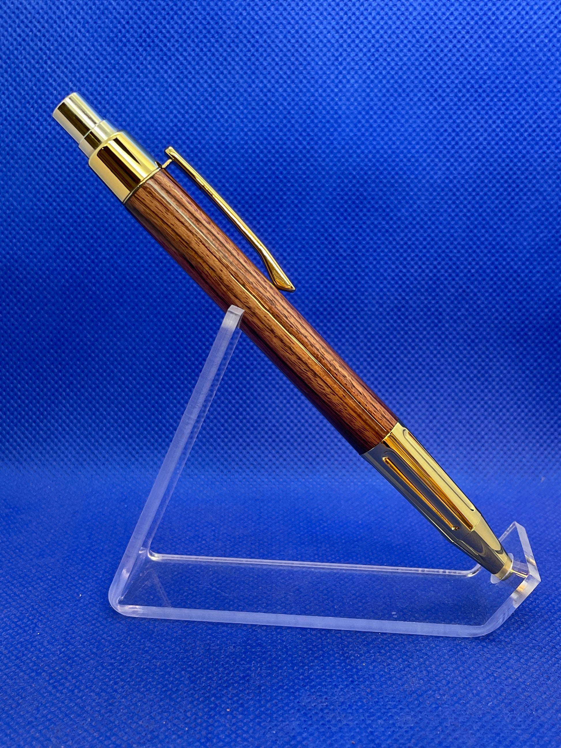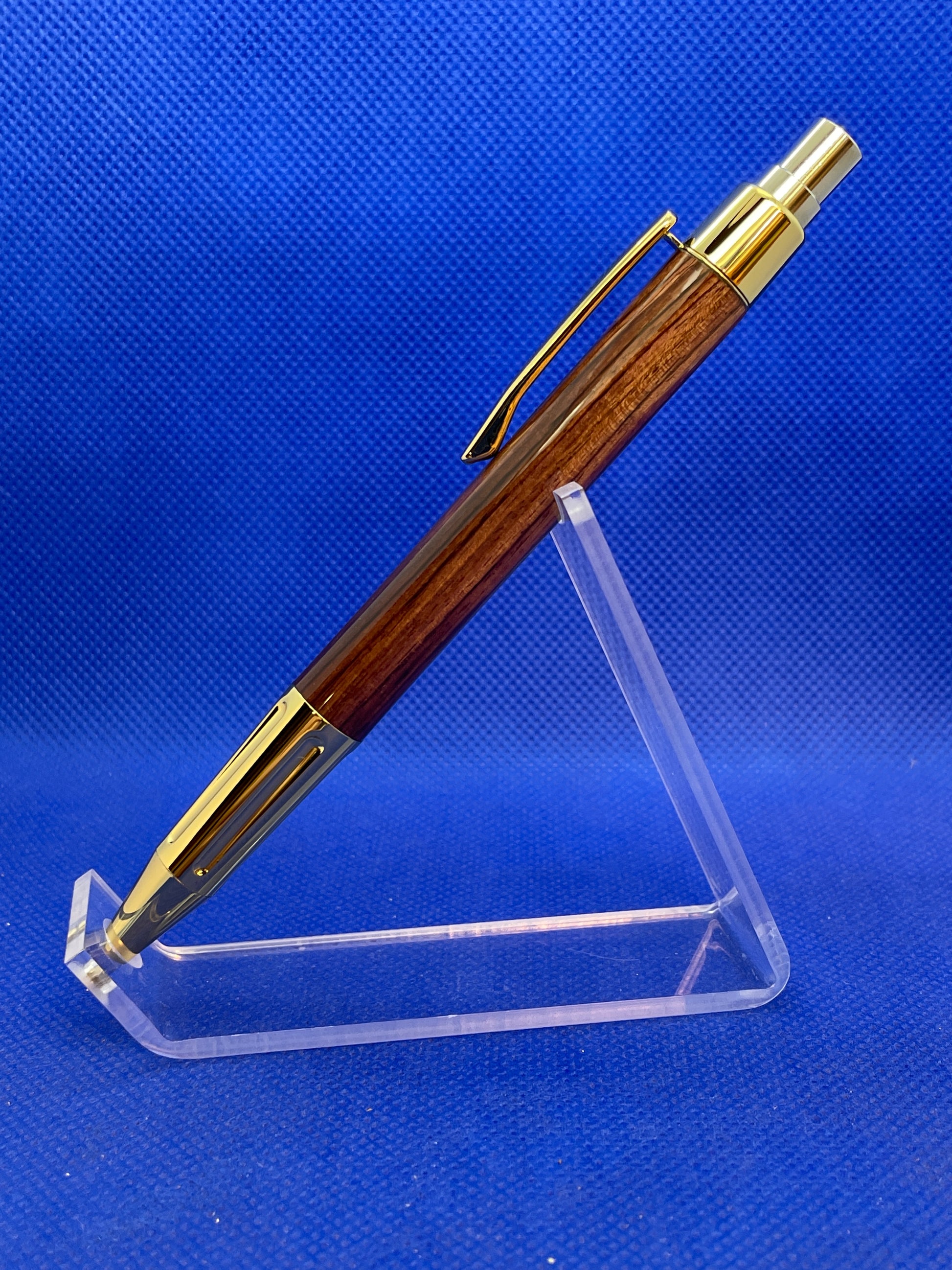 This beautiful Luxor push button ballpoint pen features a striking Kingwood body and gold metalwork. The click mechanism is an ultra-reliable, all metal Schmidt SKM-88 mechanism that is precision-engineered in Germany. This pen uses standard Parker refills.