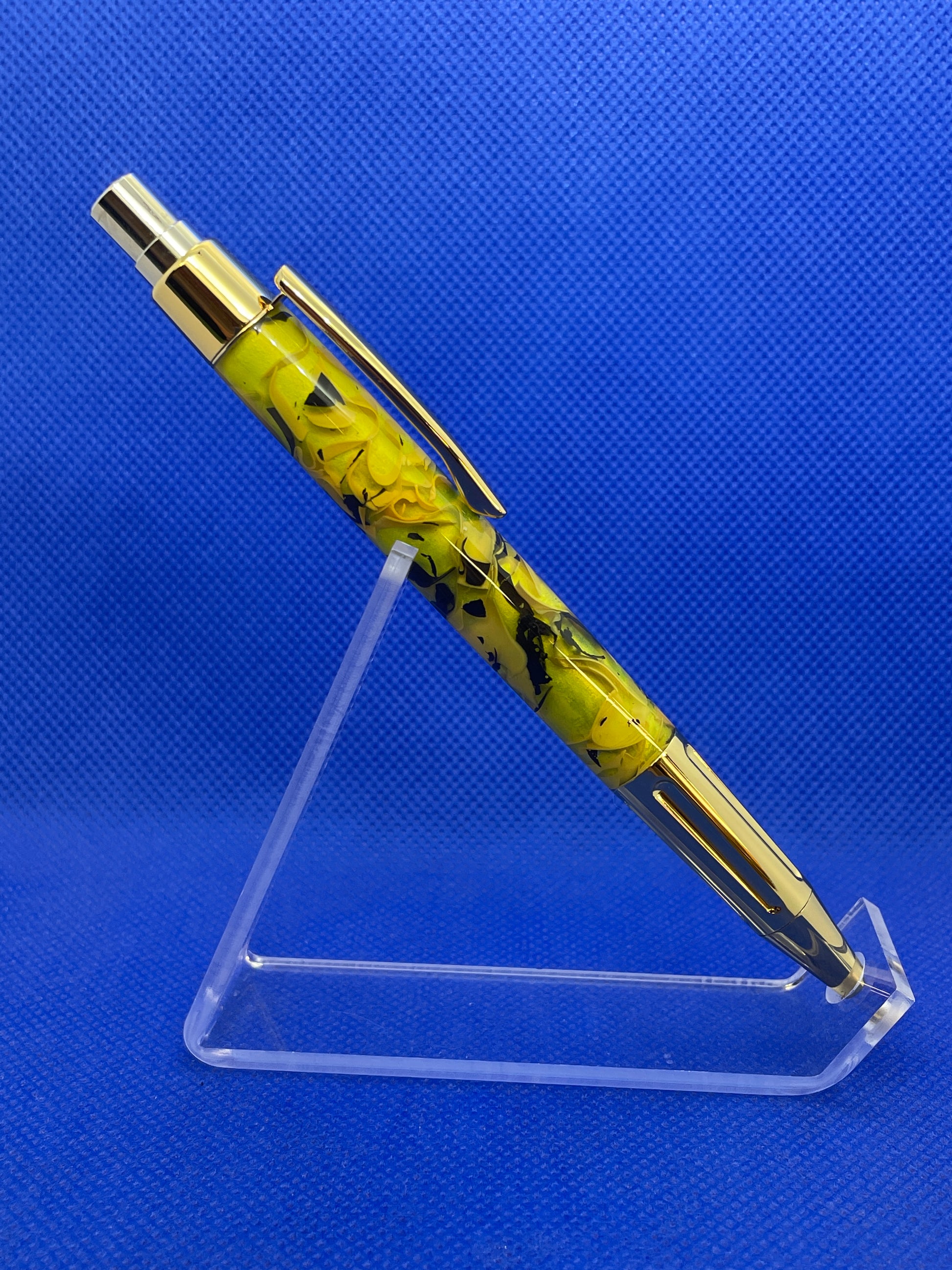This beautiful Luxor push button ballpoint pen features an Angel Fish resin body and gold metalwork. The click mechanism is an ultra-reliable, all metal Schmidt SKM-88 mechanism that is precision-engineered in Germany. This pen uses standard Parker refills.