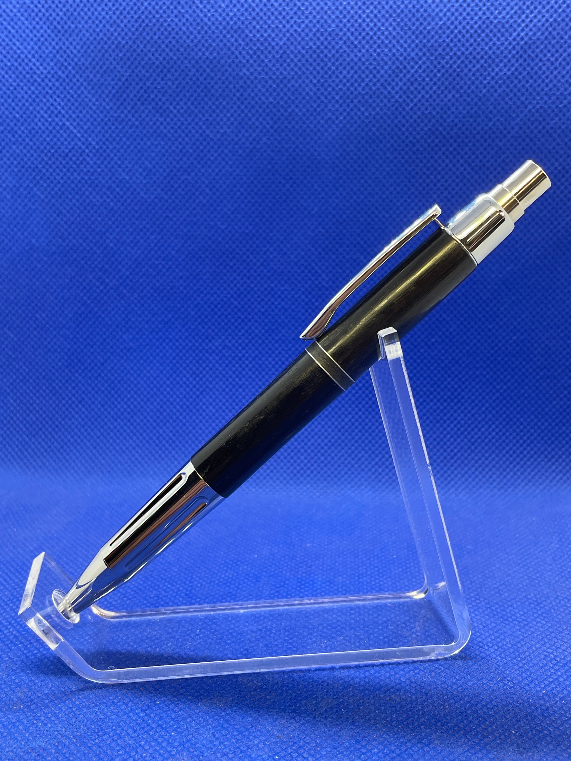 This beautiful Luxor push button ballpoint pen features a 5500 year old Ukrainian bog oak body with an aluminum and resin inlay and chrome metalwork. The click mechanism is an ultra-reliable, all metal Schmidt SKM-88 mechanism that is precision-engineered in Germany. The pen comes with a certificate of radio carbon dating from Laval University to verify the wood's age. This pen uses standard Parker refills.