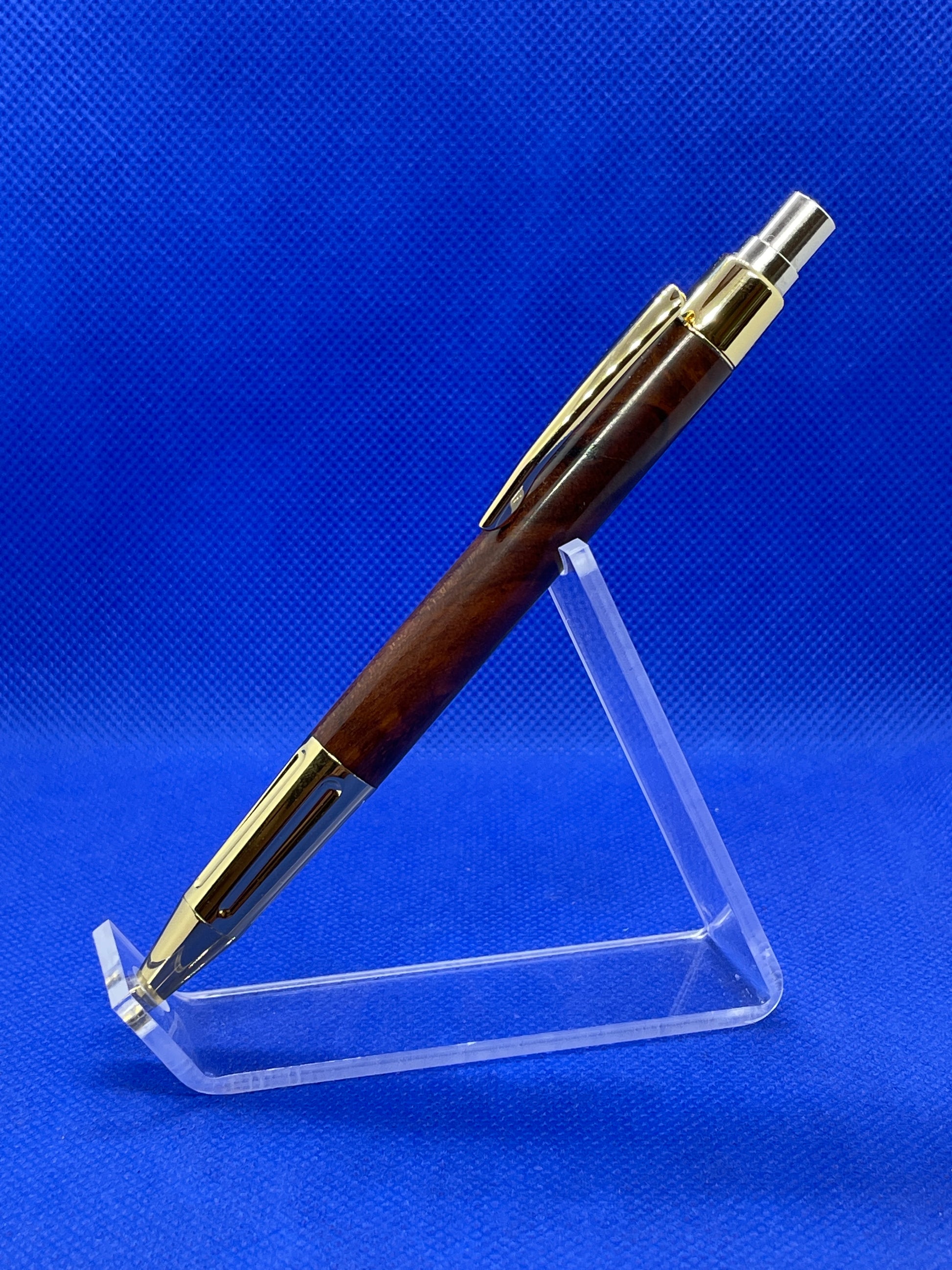 This Luxor click ballpoint pen features sating chrome metalwork and a snakewood body. Snakewood is a very dense South American hardwood with unique figuring. This pen uses standard "Parker" style refills.