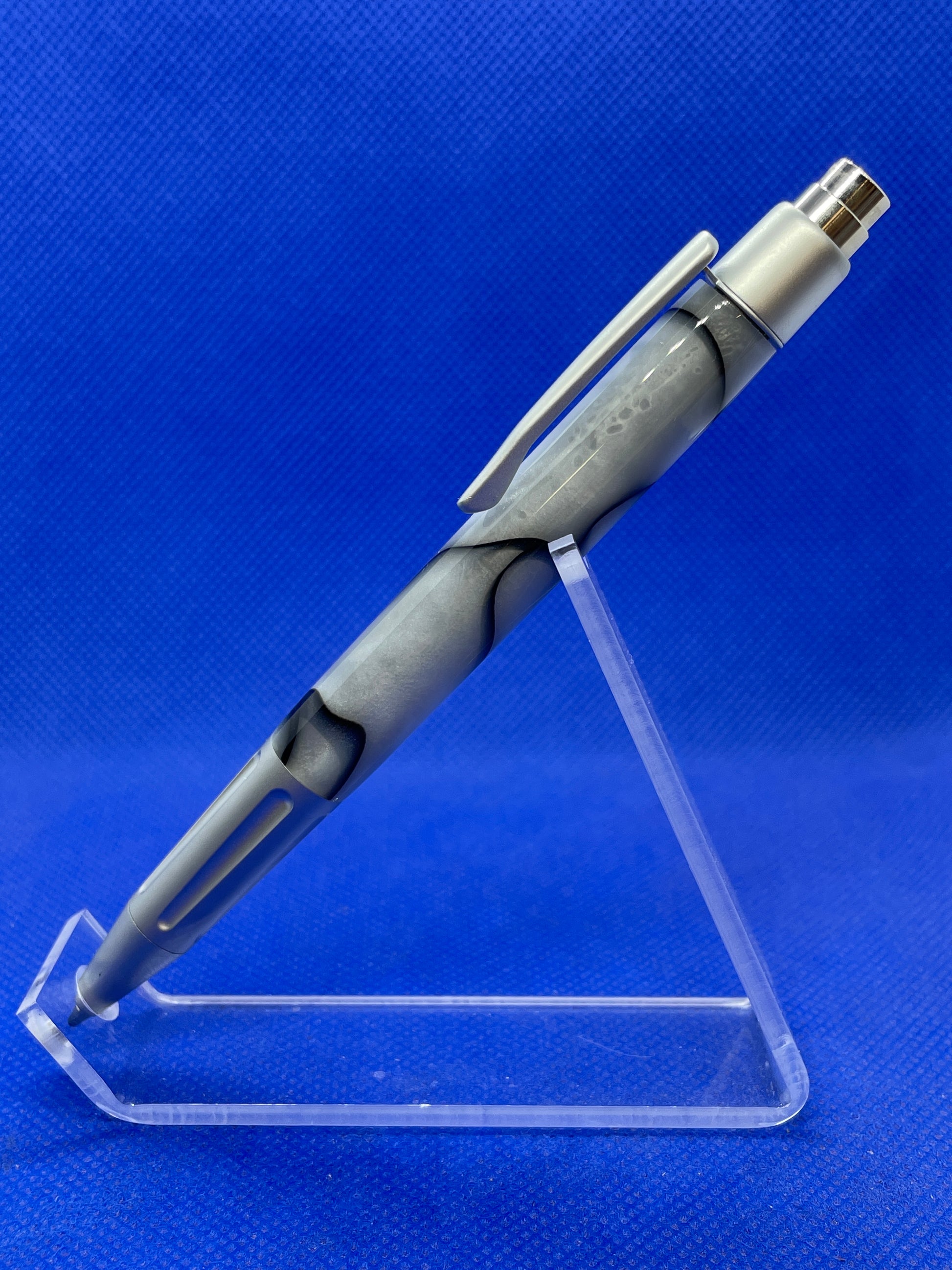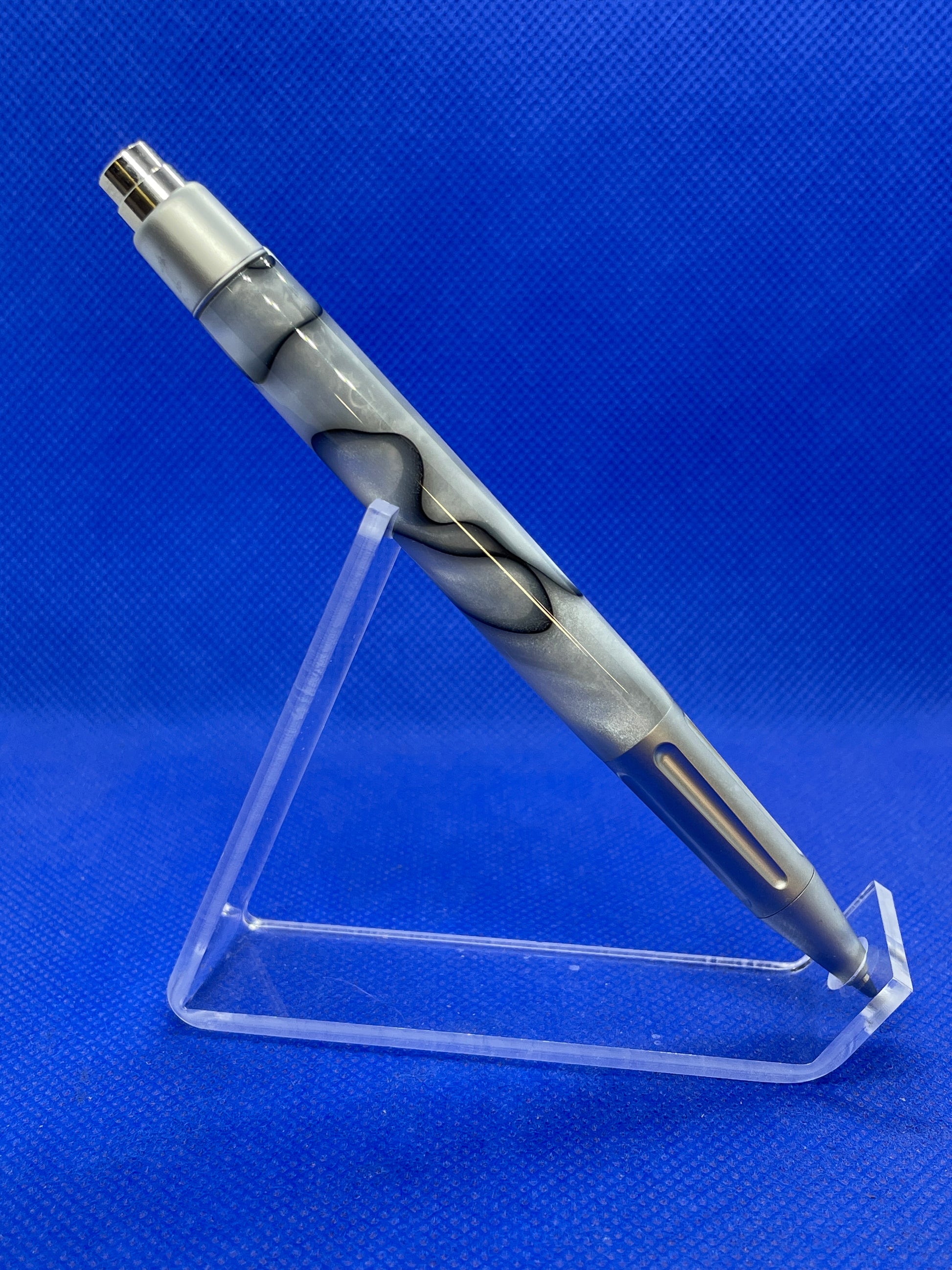 This Luxor click ballpoint pen features satin chrome metalwork and a "Black and White Pearl" acrylic acetate body. Luxor pens use a smooth and refined all-metal Schmidt click mechanism that is incredibly durable. This pen uses standard "Parker" style refills.