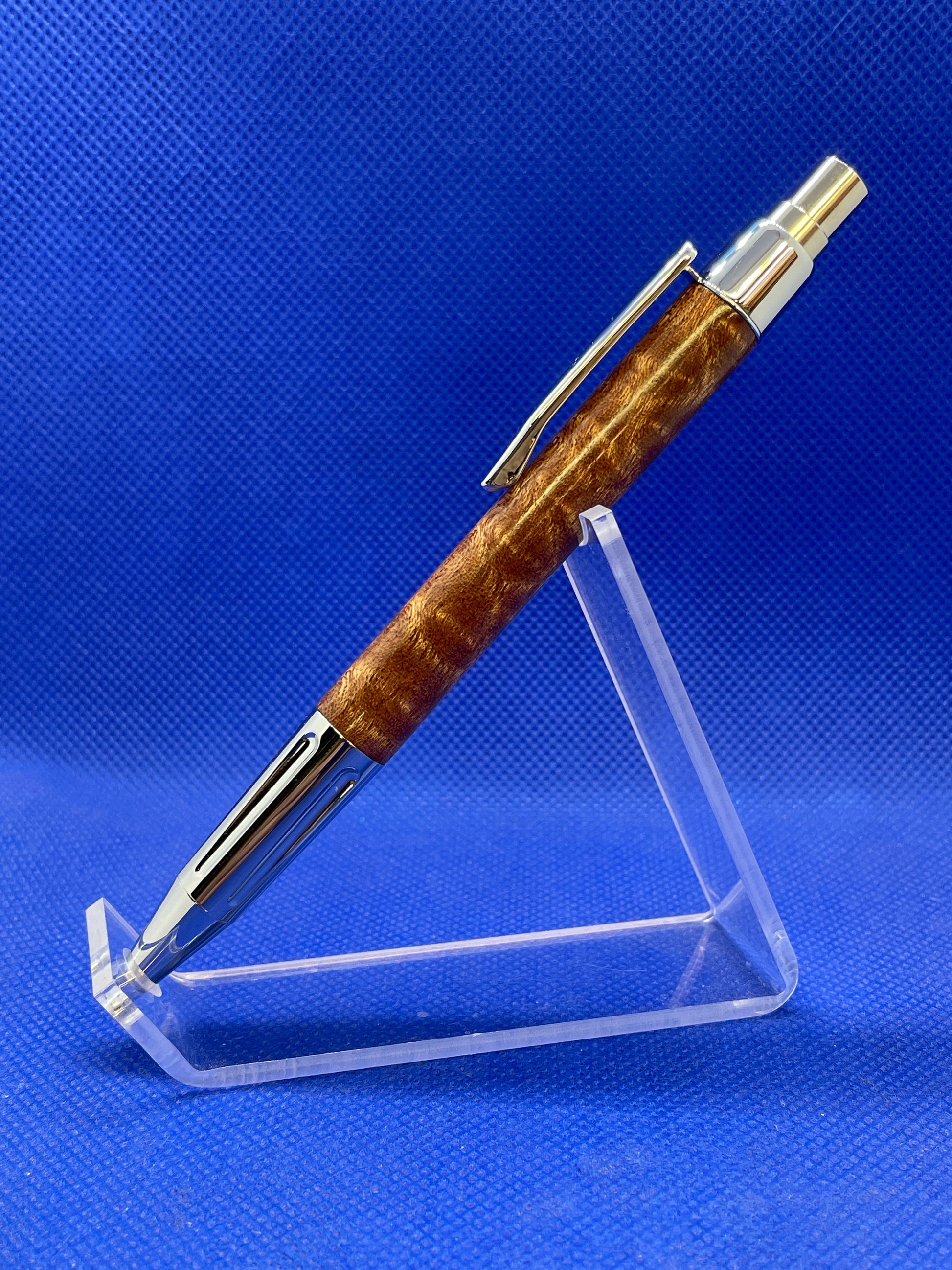 This Luxor click ballpoint pen features sating chrome metalwork and a beautifully figured Pomelle Sapele wood body. Luxor pens use as mooth and refined all-metal Schmidt click mechanism that is incredibly durable. This pen uses standard "Parker" style refills.