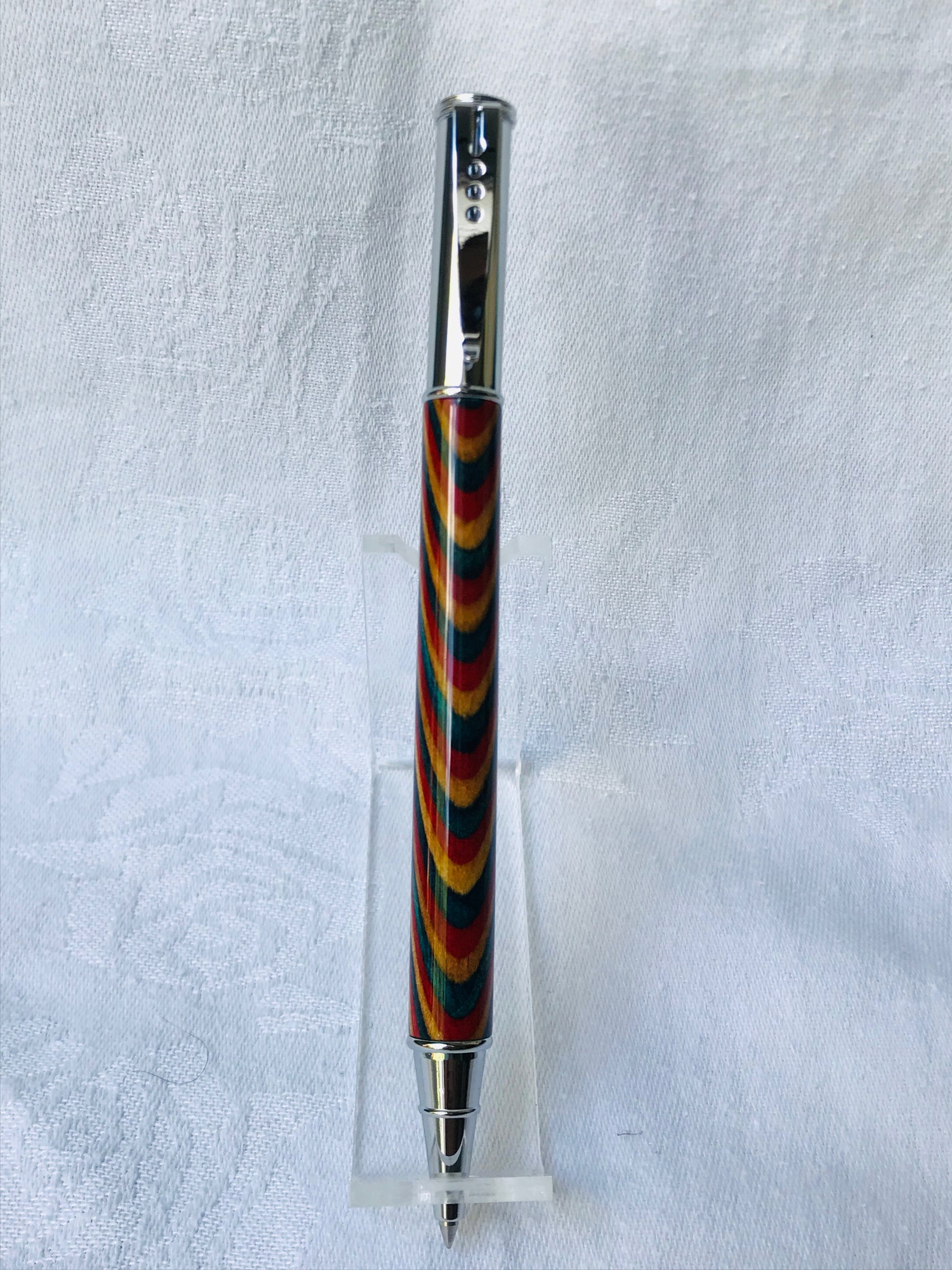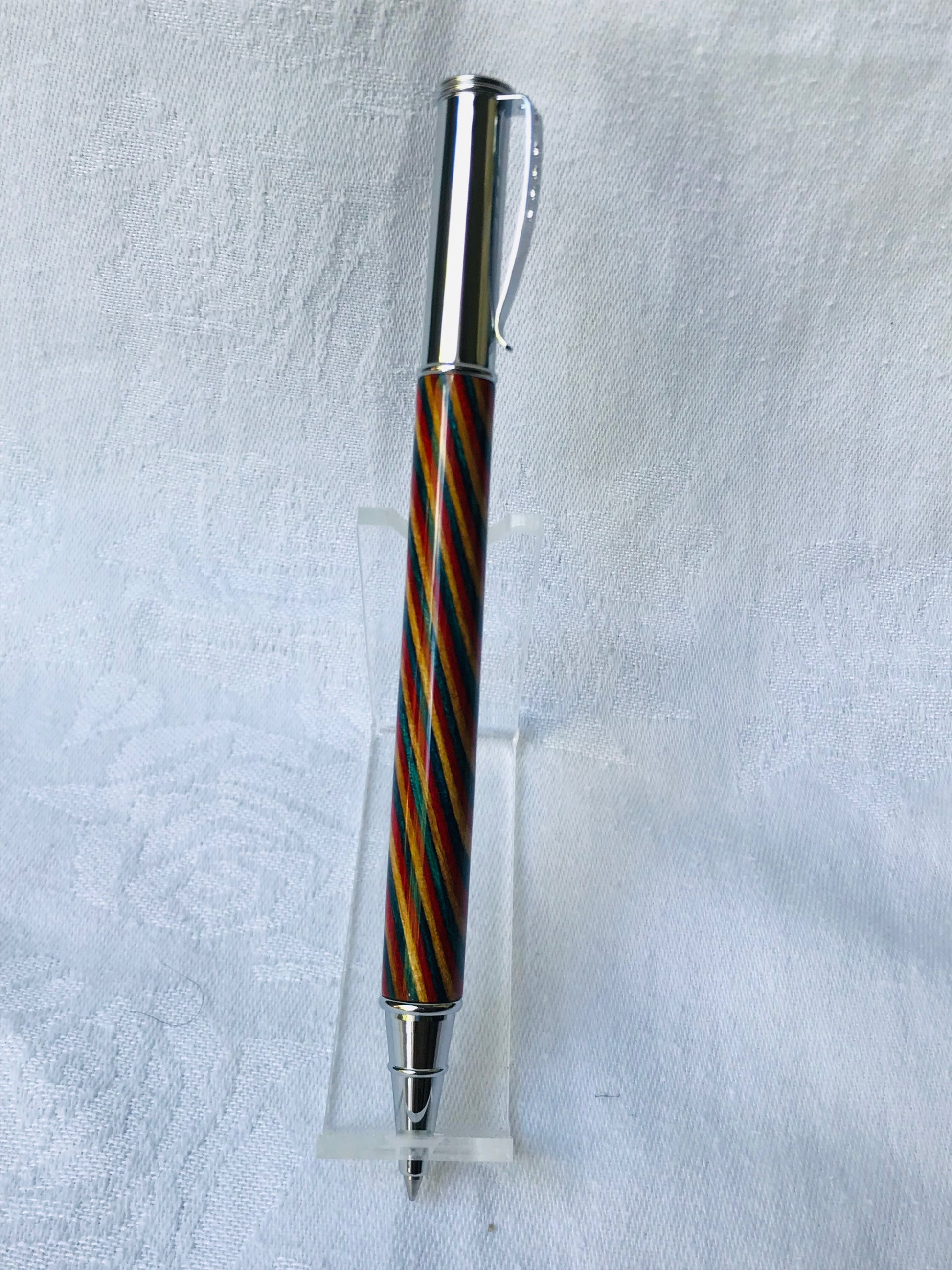 Rainbow rollerball pen- wooden popsicle stick body with chrome trim