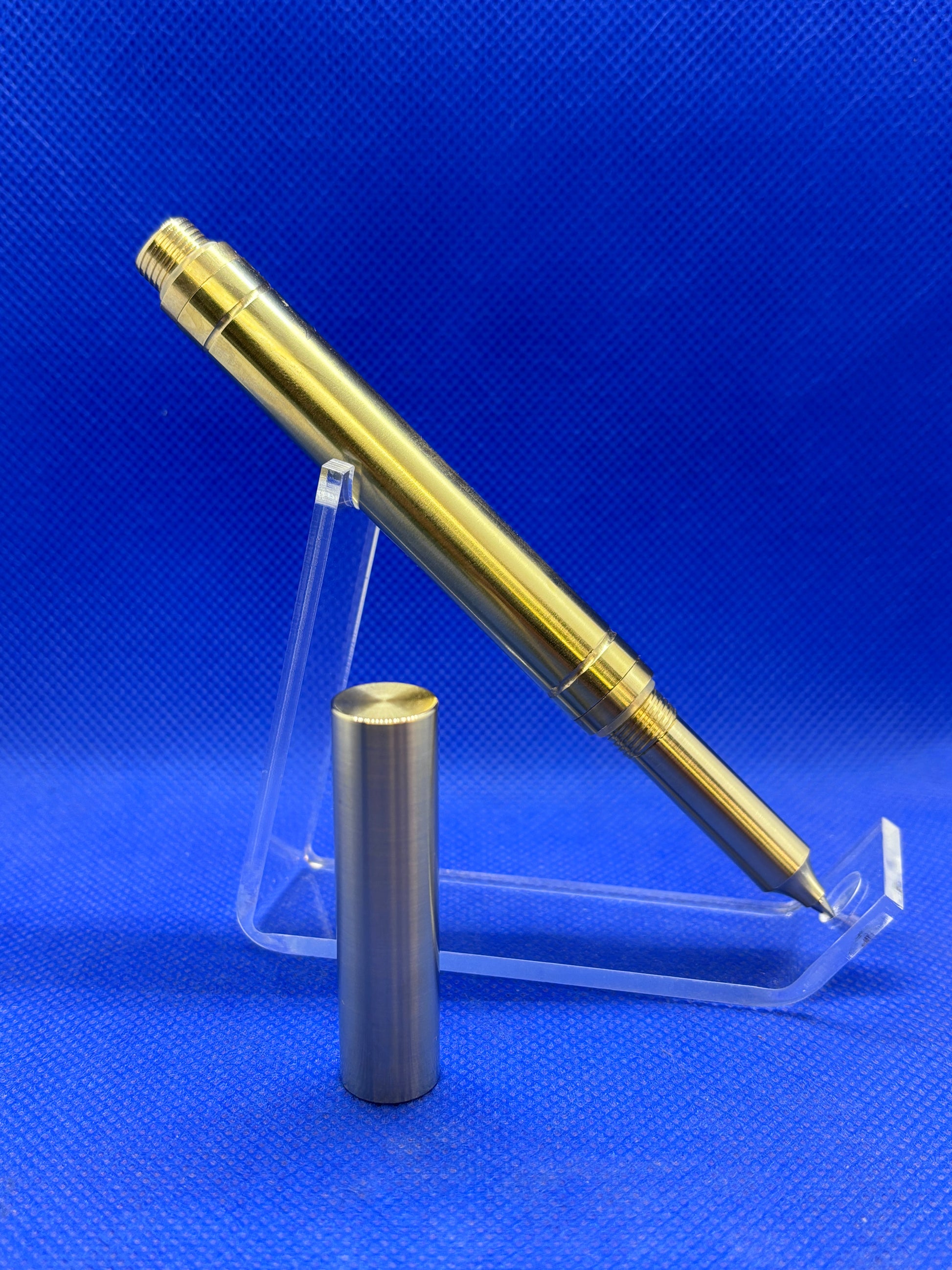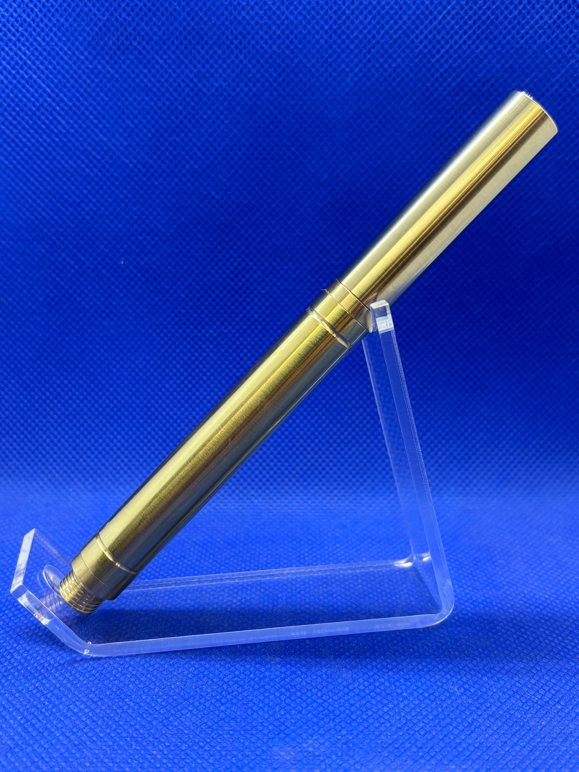 This RAW Rollerball pen has machined brass fittings and a solid brass body. This pen has a weighty yet comfortable feel in the hand. This style of pen does not have a clip and its clean, simple lines make it ideal as a desk pen. This pen use standard Schmidt style rollerball refills.