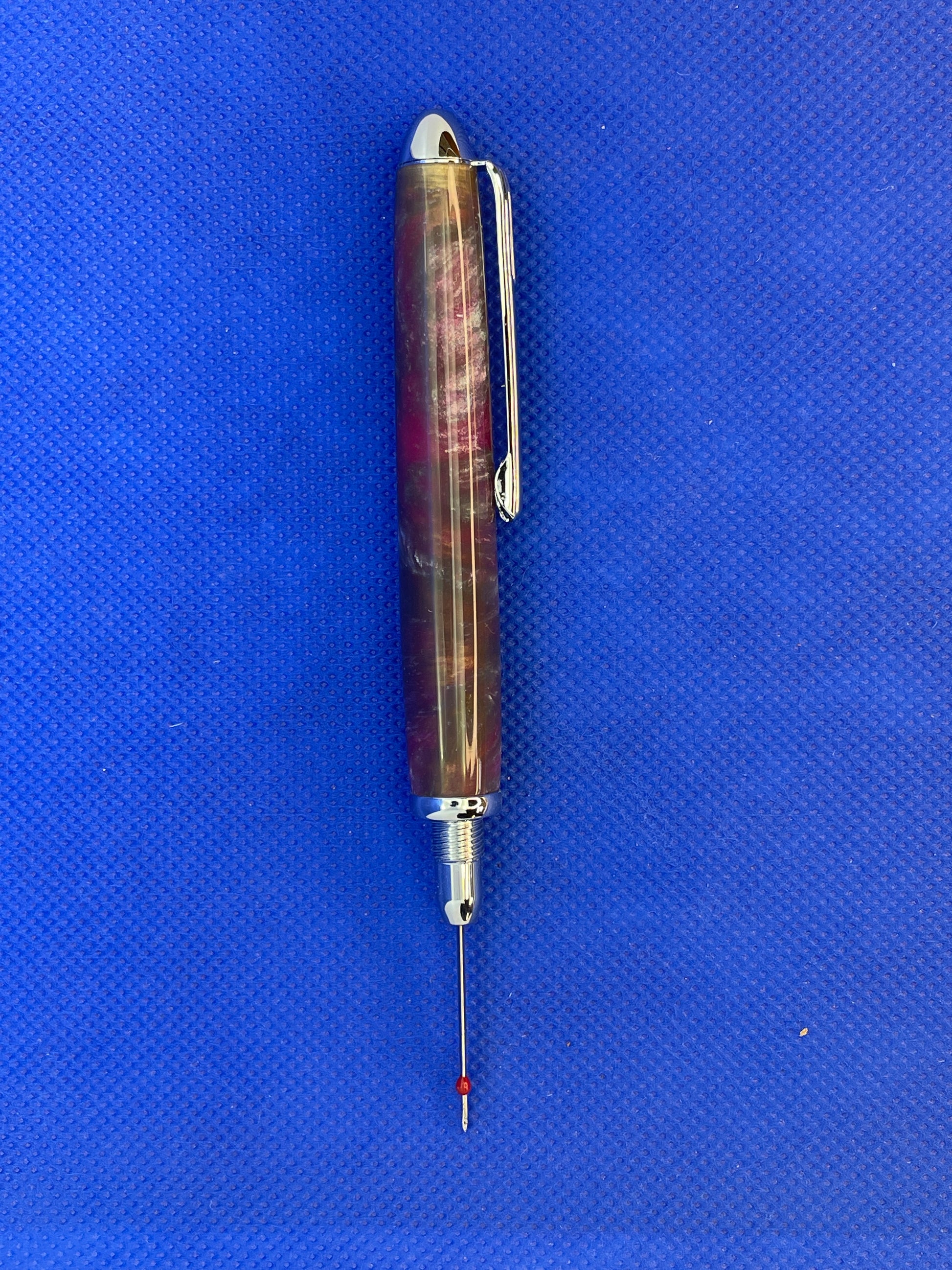 This seam ripper features a "Wild Berry" resin body and chrome trim. The tip can be removed and inserted in the body when not in use.