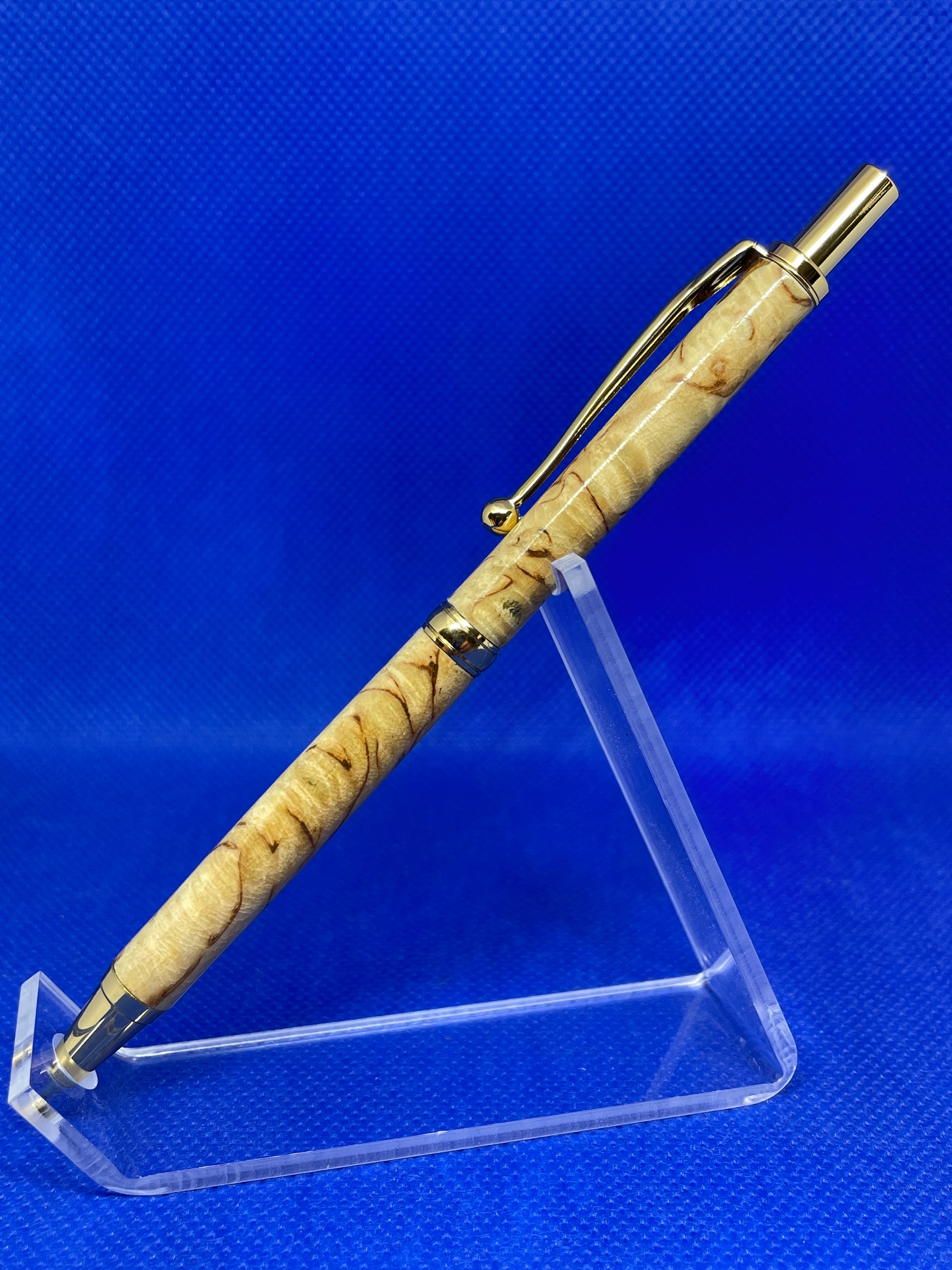 This elegant pencil features gold trim and a highly figured Masur Birch body. This combination creates a unique and stylish lightweight pencil. This pencil uses standard 5mm replacement leads.