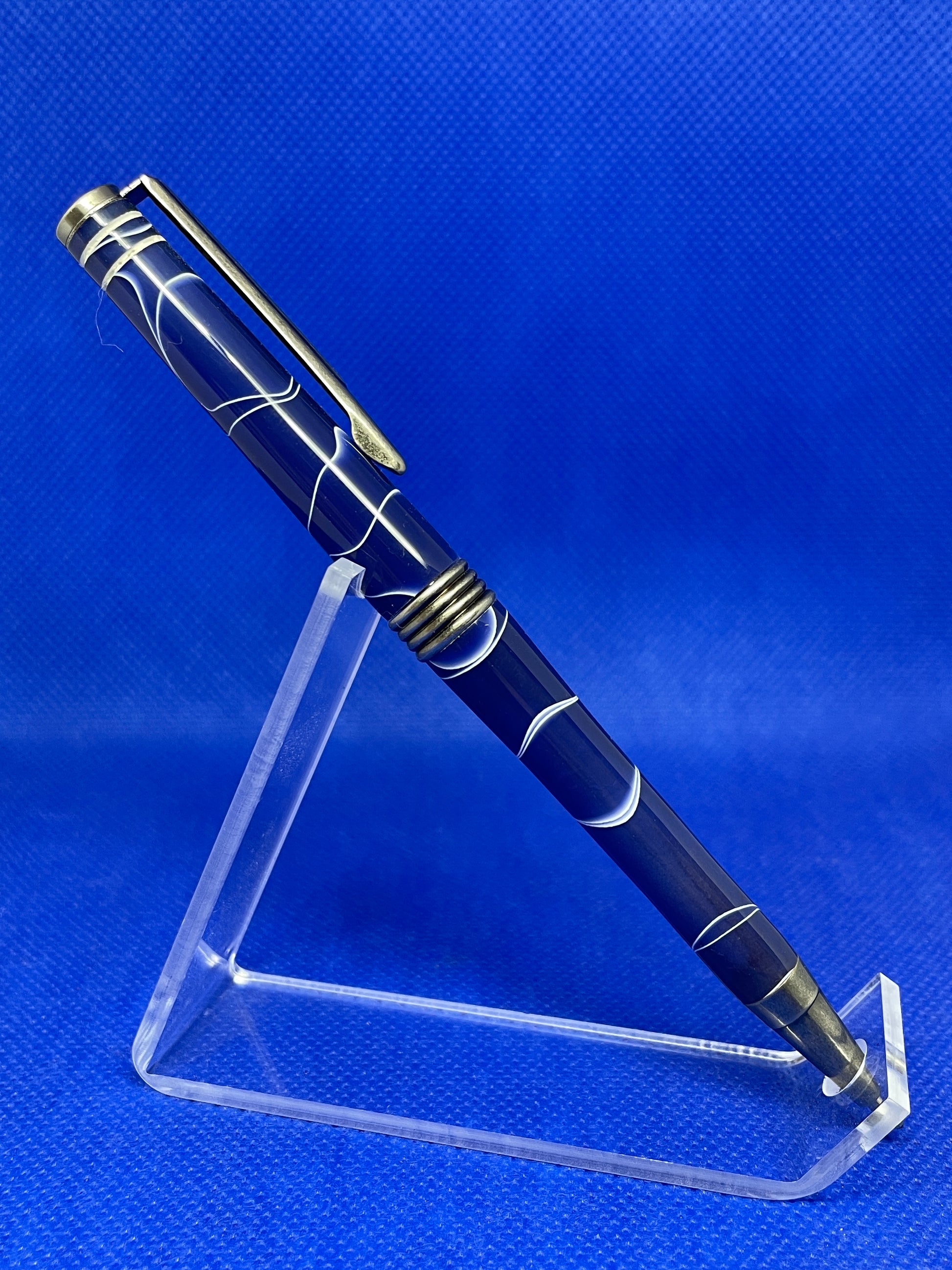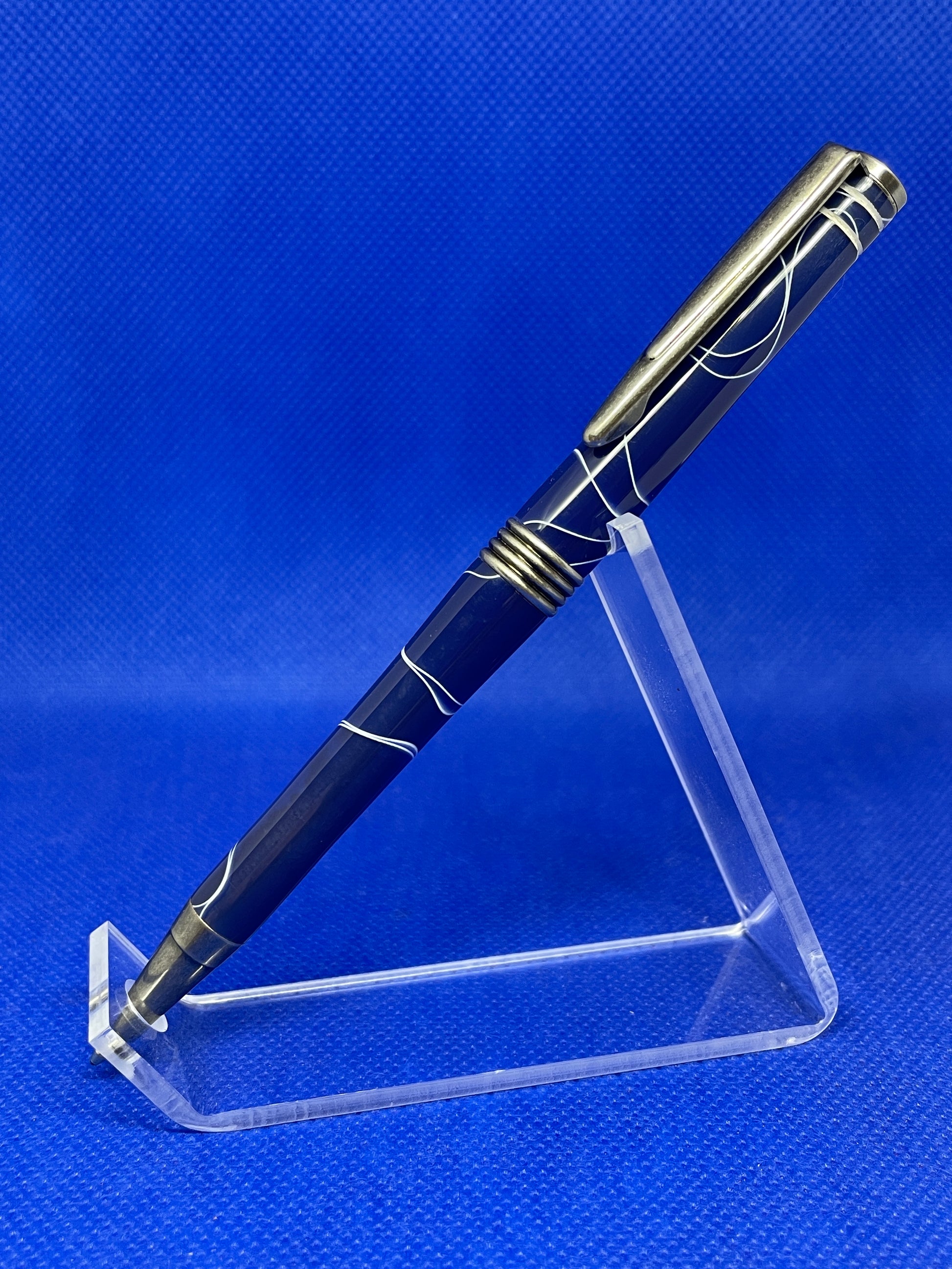 This Streamline ballpoint pen features antique silver trim and a "Stone Wash" acrylic acetate body. An attractive and well balanced pen for everyday use. It uses standard Cross style refills.