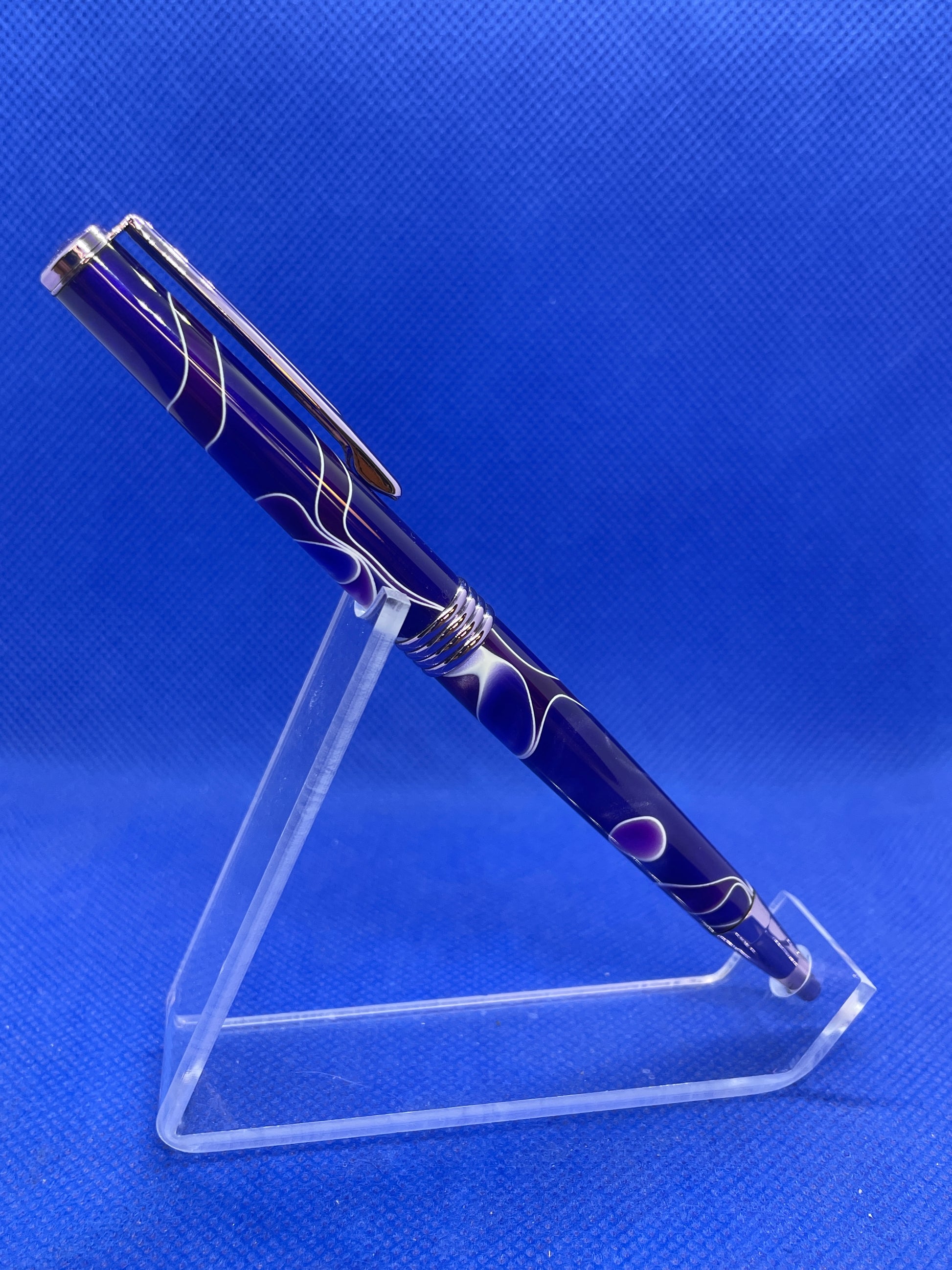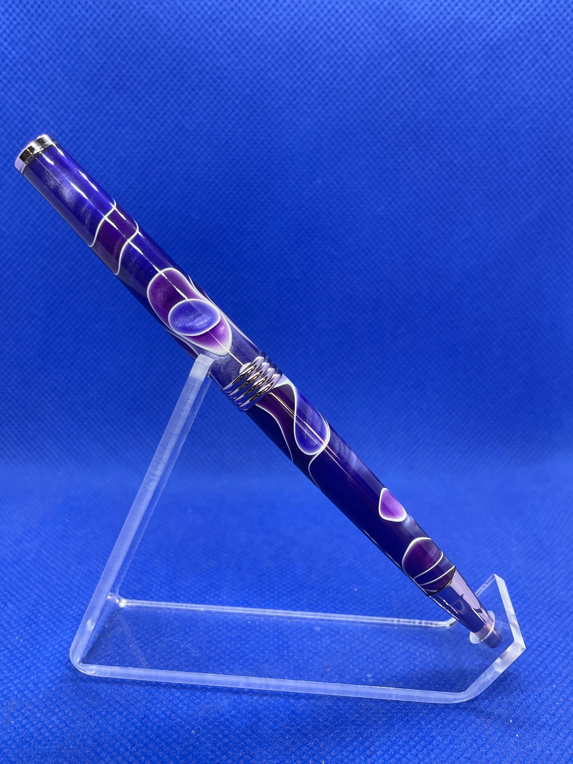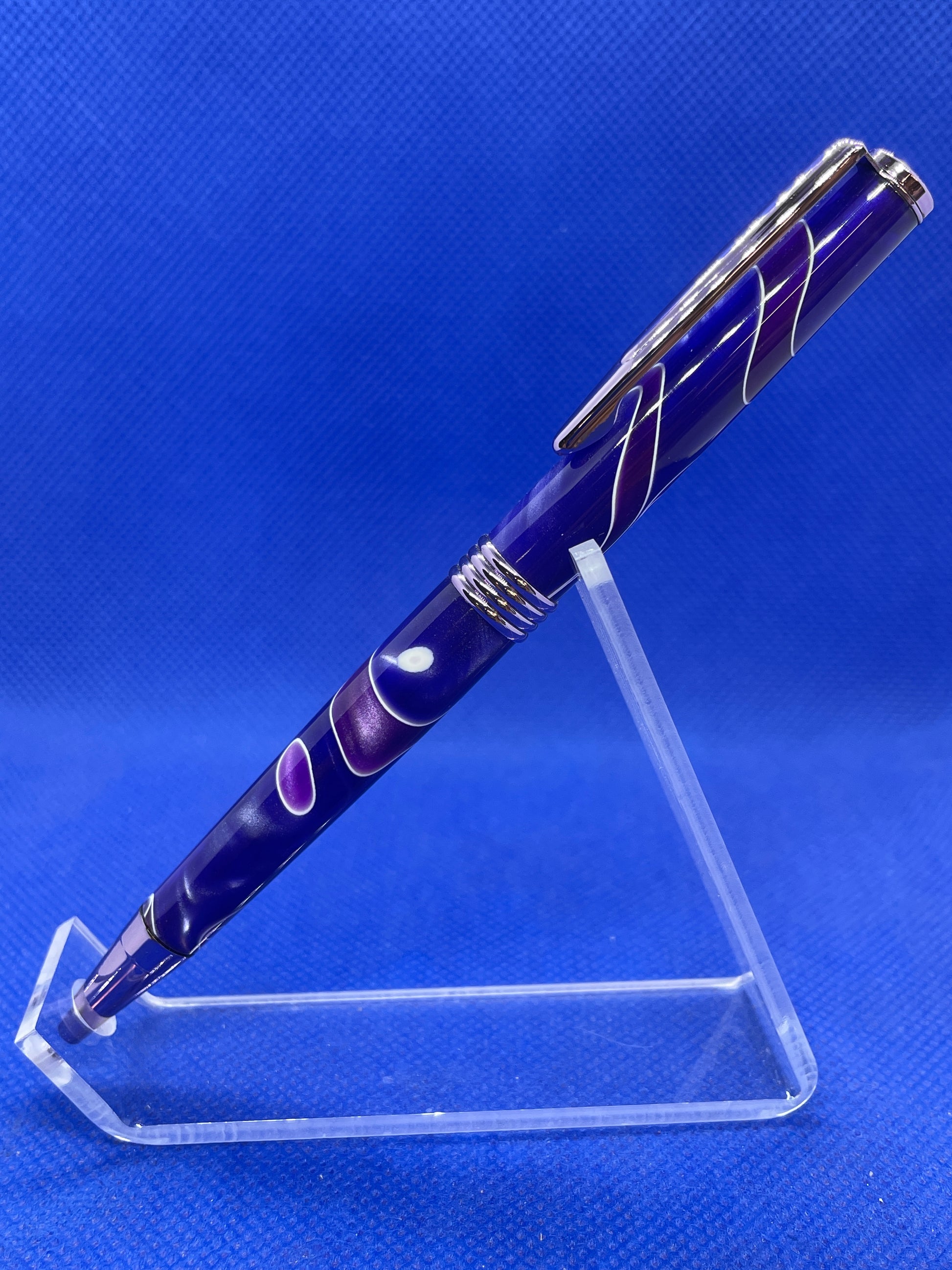 This Streamline ballpoint pen features purple metallic trim and an "Ultra Violet" acrylic acetate body. This pen uses "Cross" style refills.