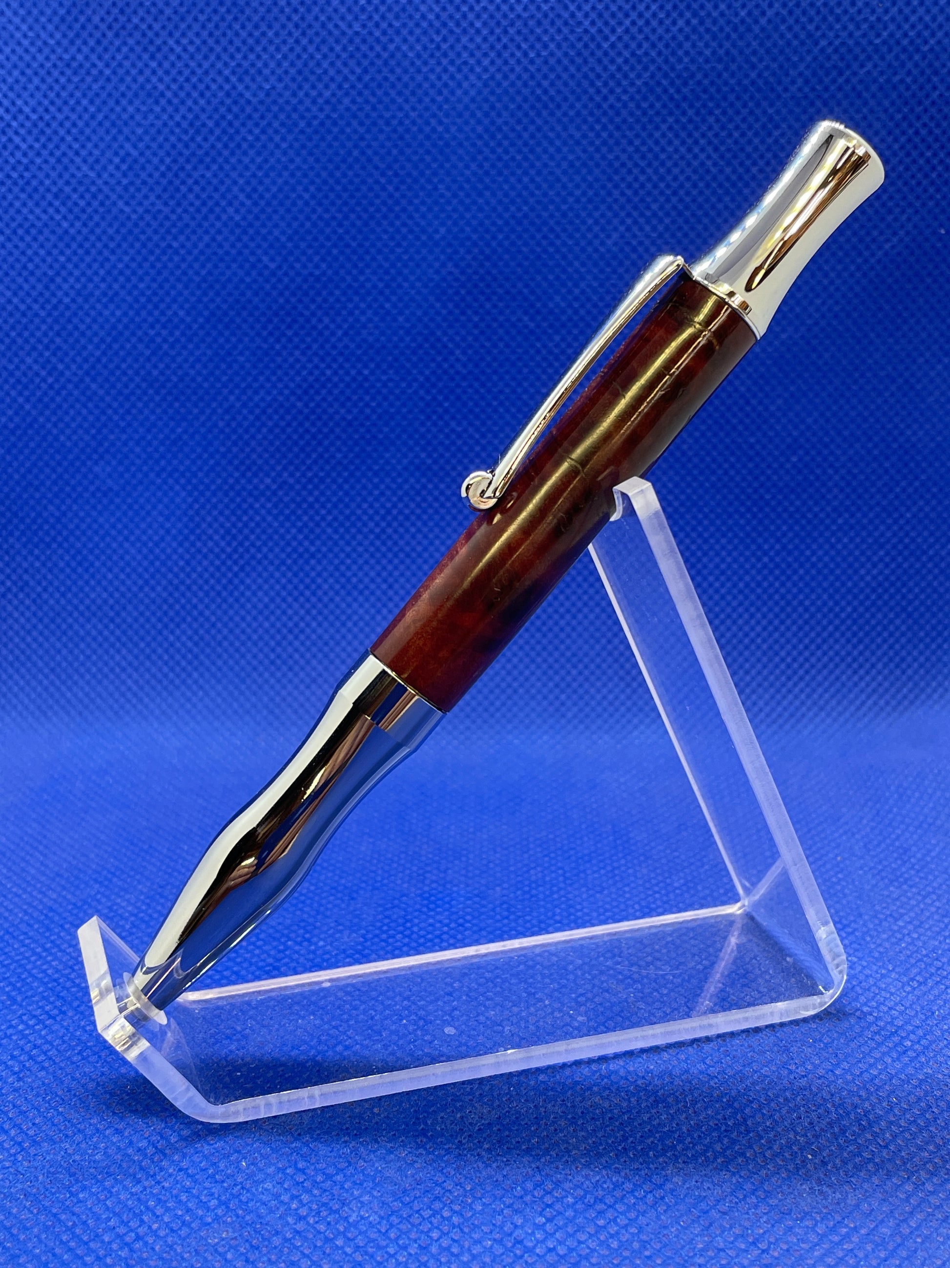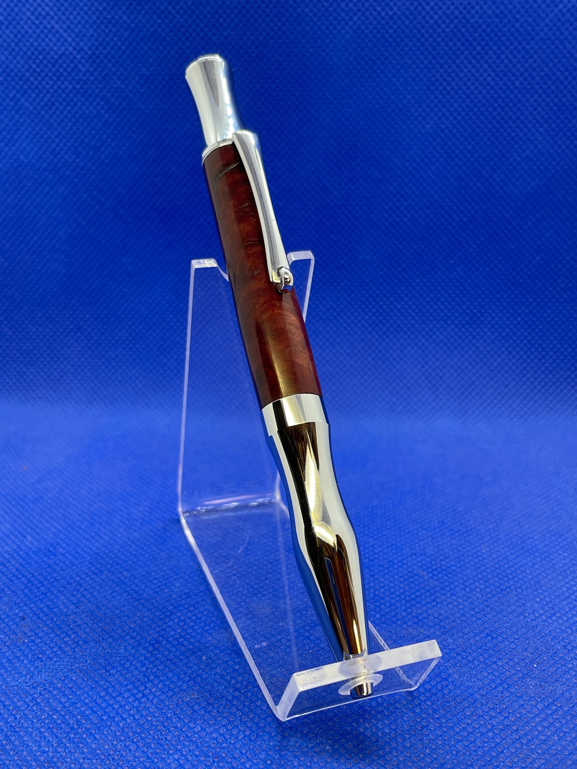 This Virage twist ballpoint pen features chrome trim and a rich Red Mallee burl wood body. This pen uses standard "Parker" style refills
